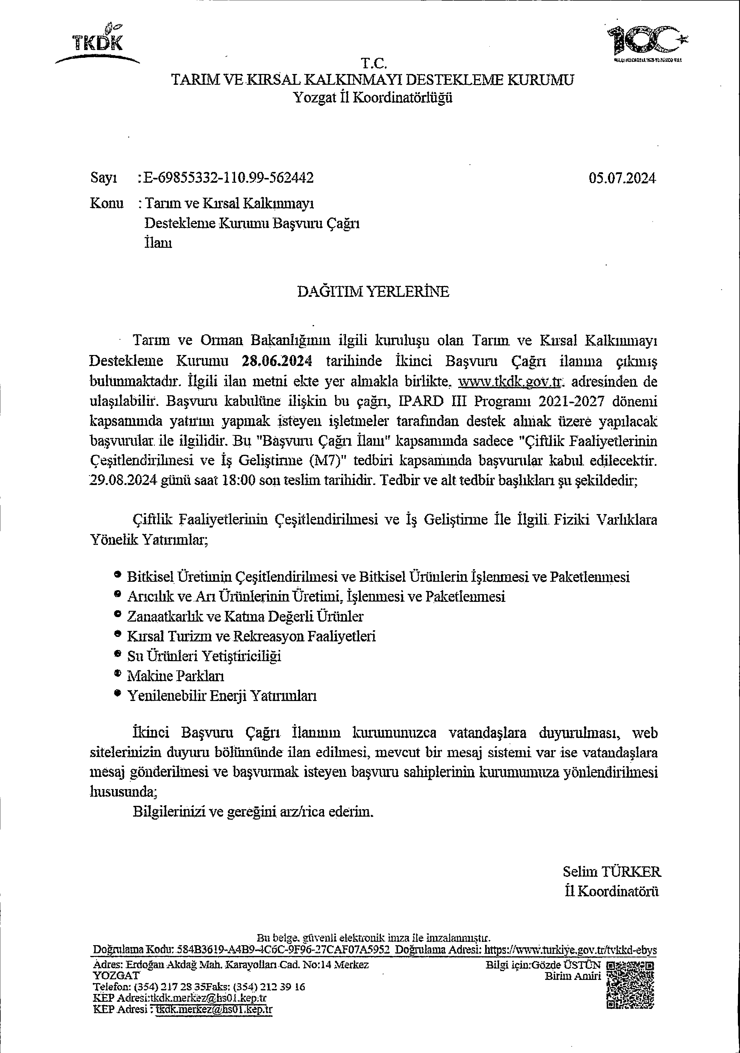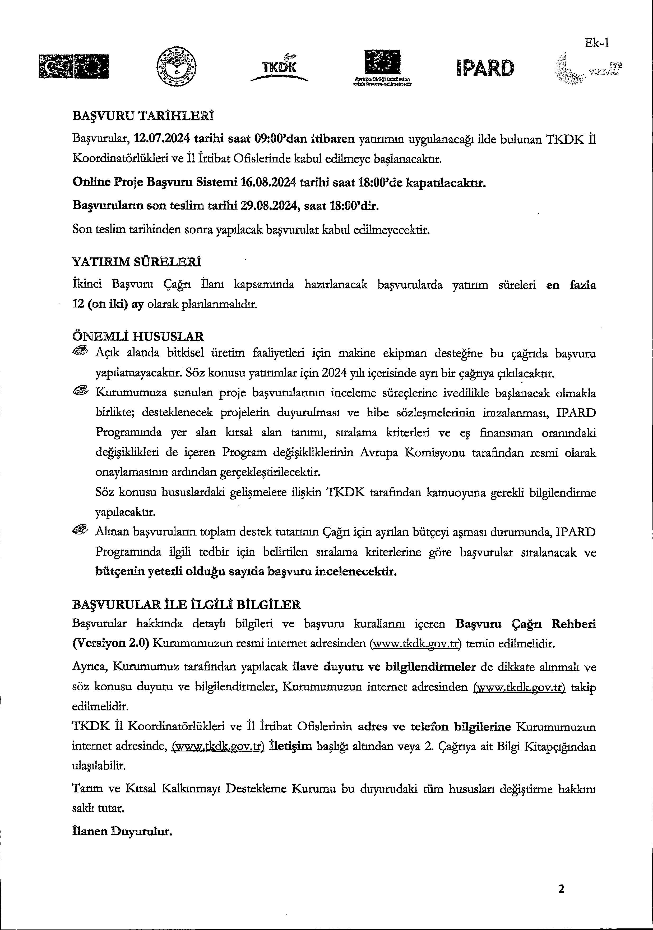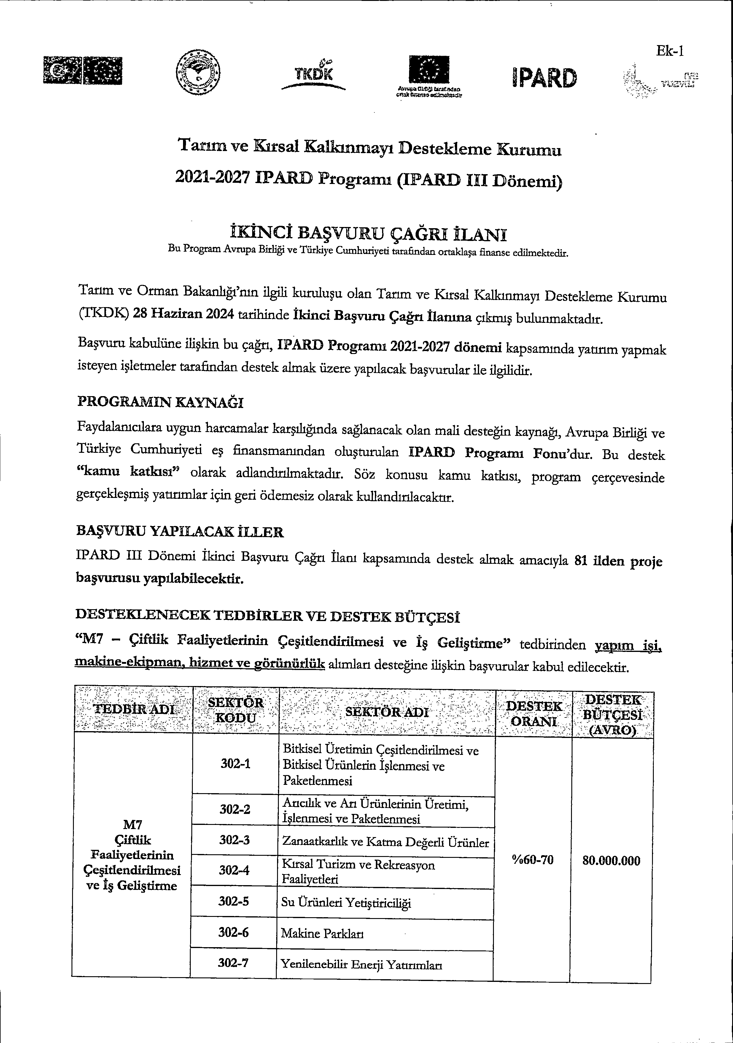 TARIM VE KIRSAL KALKINMAYI DESTEKLEME KURUMU BAŞVURU ÇAĞRI İLANI!