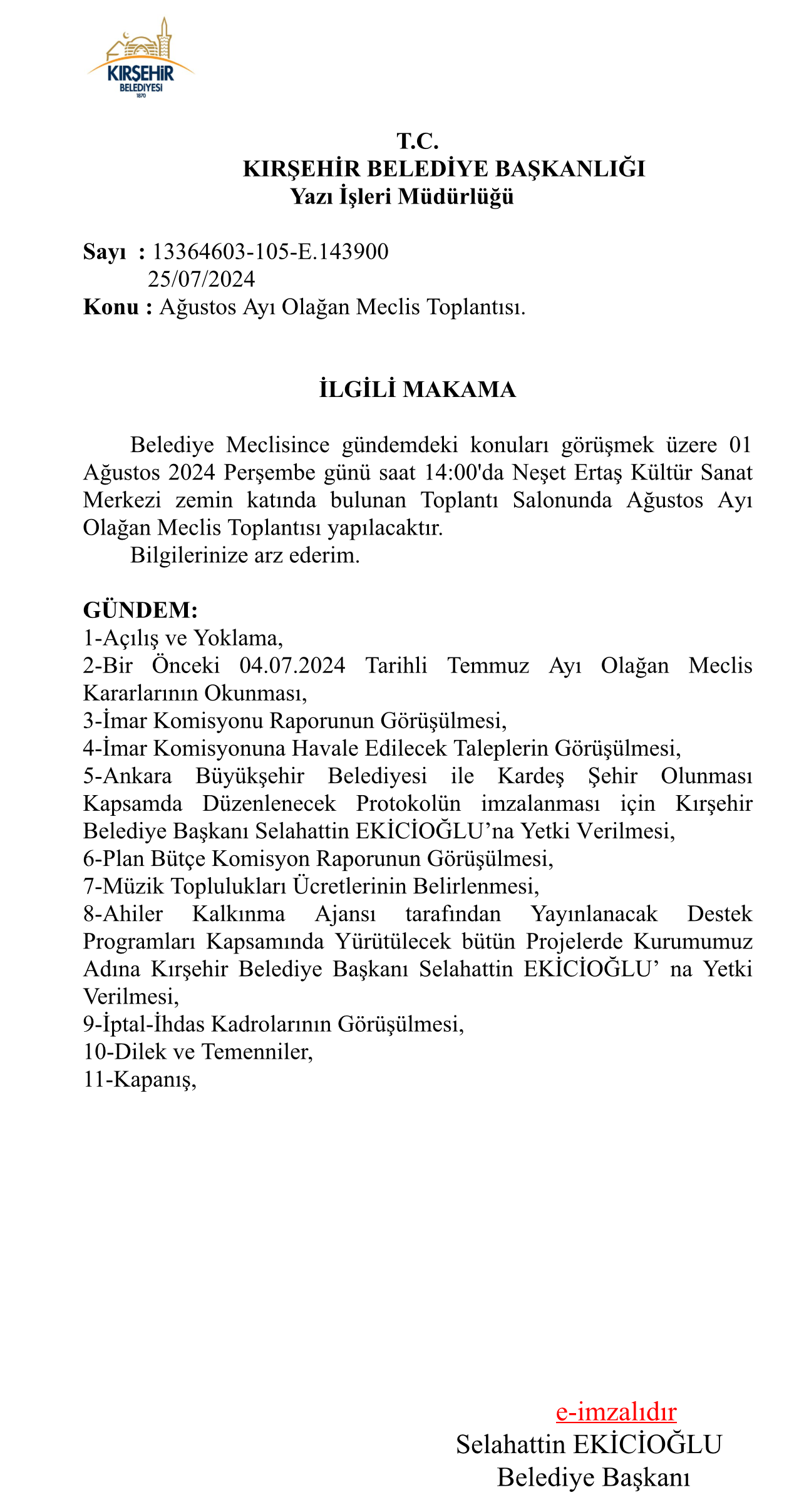 AĞUSTOS AYI MECLİS GÜNDEMİ