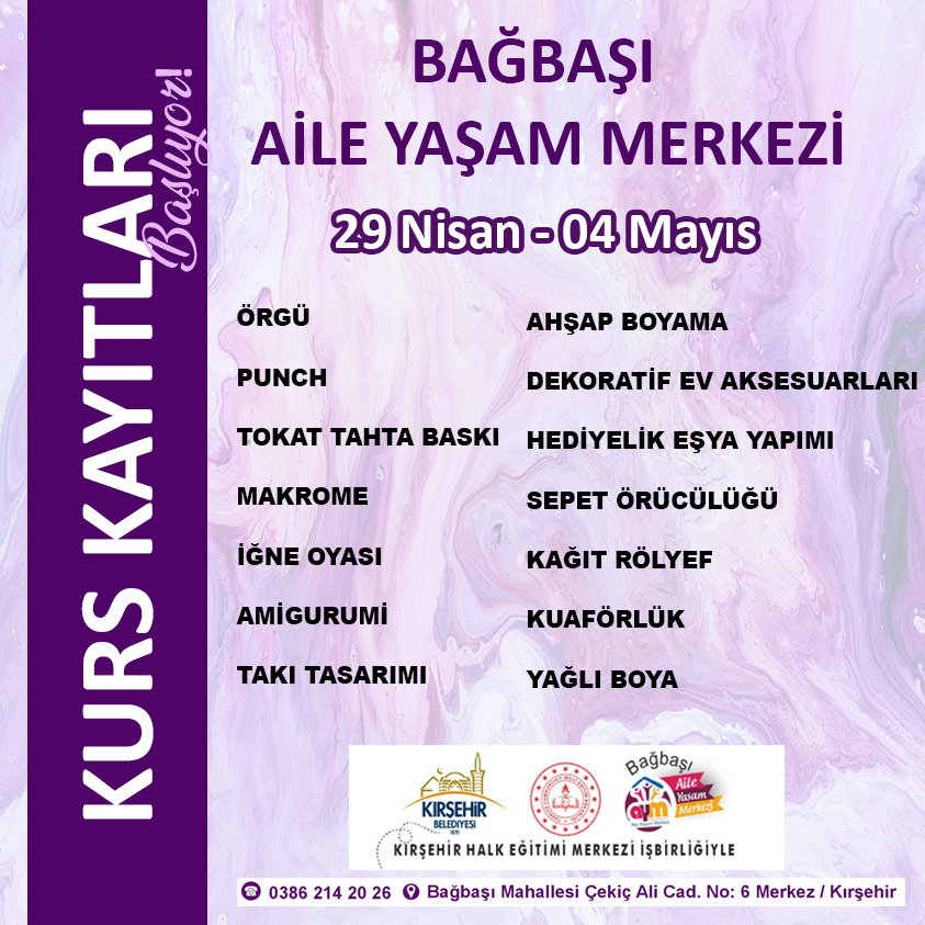 BAĞBAŞI AİLE YAŞAM MERKEZİ KURS KAYITLARI!