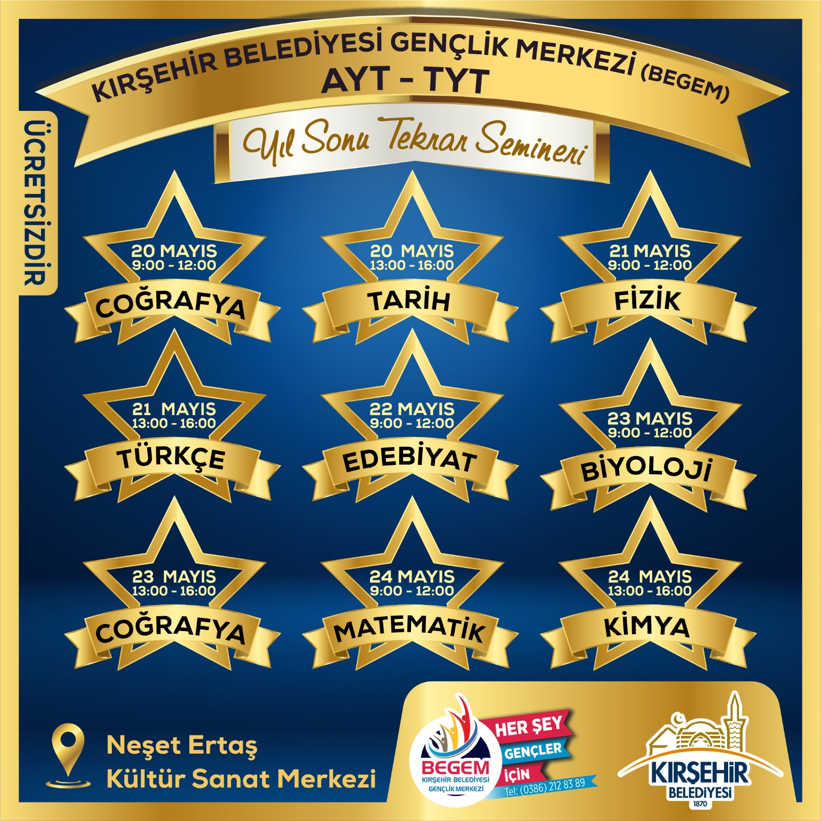 KIRŞEHİR BELEDİYESİ GENÇLİK MERKEZİ (BEGEM) AYT - TYT YIL SONU TEKRAR SEMİNERİ
