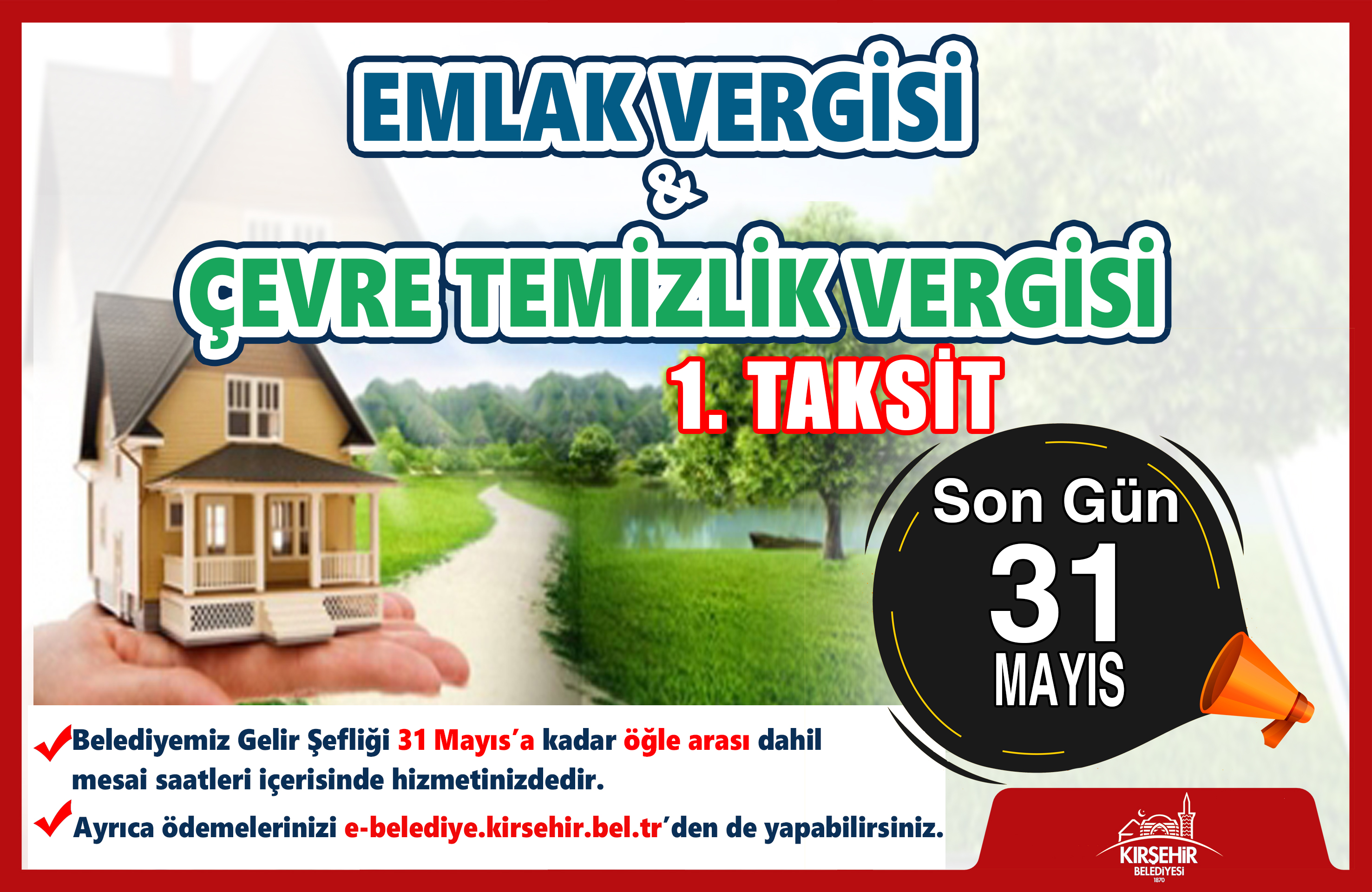 EMLAK VE ÇEVRE TEMİZLİK VERGİSİ 1. TAKSİT SON GÜN 31 MAYIS!