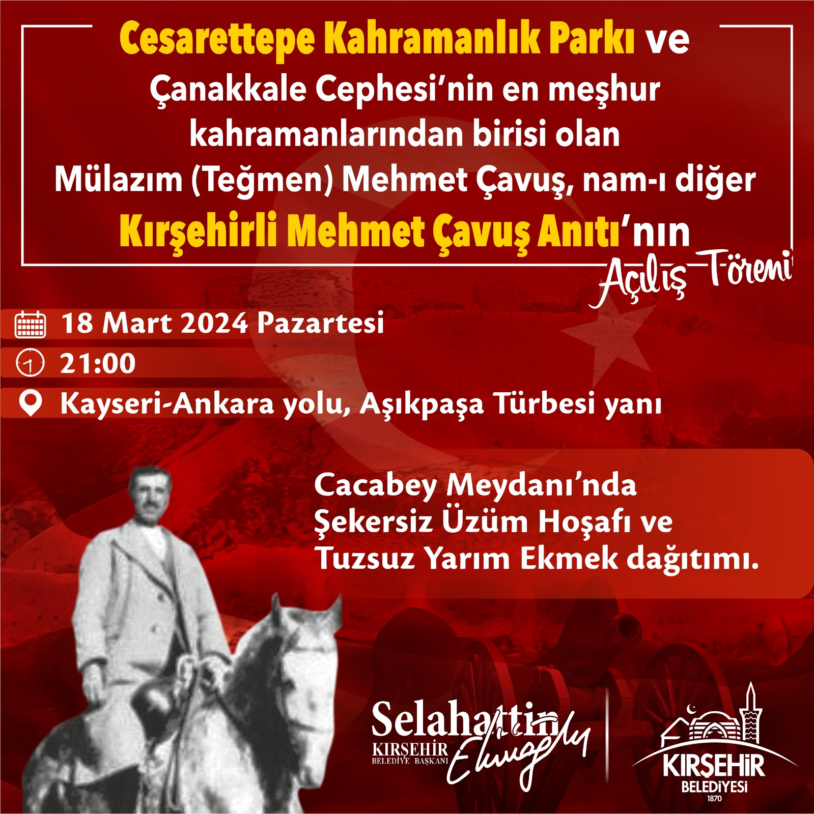 "CESARETTEPE KAHRAMANLIK PARKI ve KIRŞEHİRLİ MEHMET ÇAVUŞ ANITI" AÇILIŞ TÖRENİ