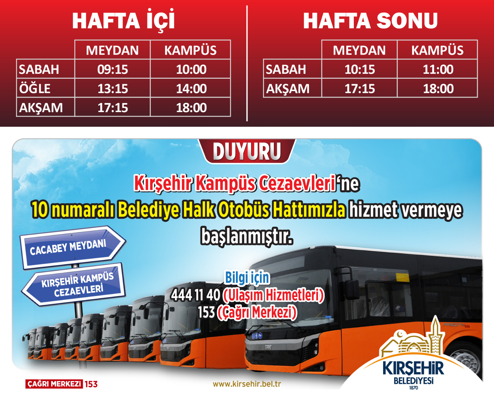 BELEDİYE OTOBÜS SEFER SAATLERİ