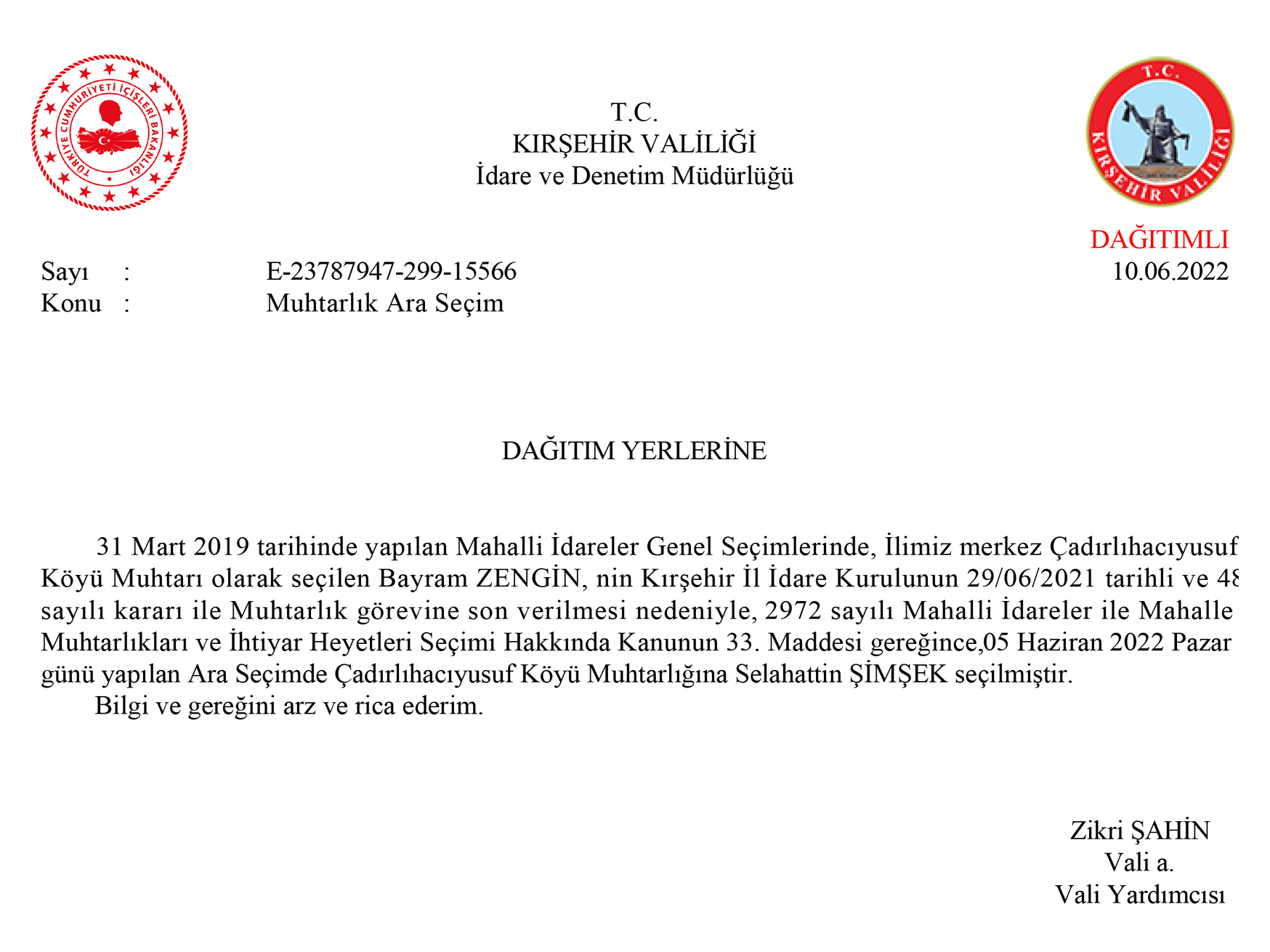 HALKIMIZA SAYGIYLA DUYURULUR!