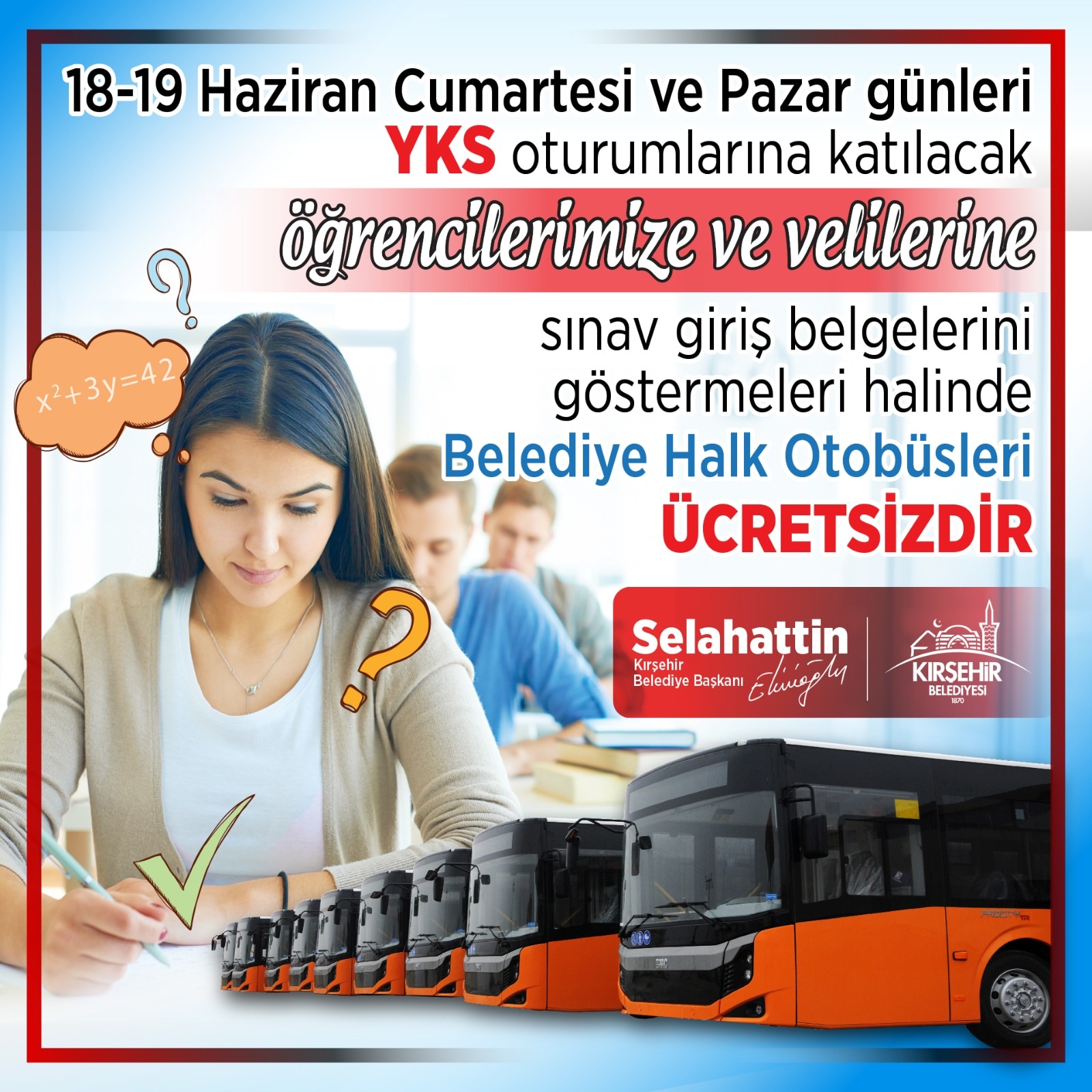 YKS'YE GİRECEK ÖĞRENCİLERİMİZE VE VELİLERİNE BELEDİYE HALK OTOBÜSLERİ ÜCRETSİZDİR!..