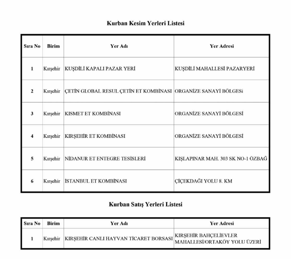 KIRŞEHİR KURBAN KESİM VE SATIŞ YERLERİ
