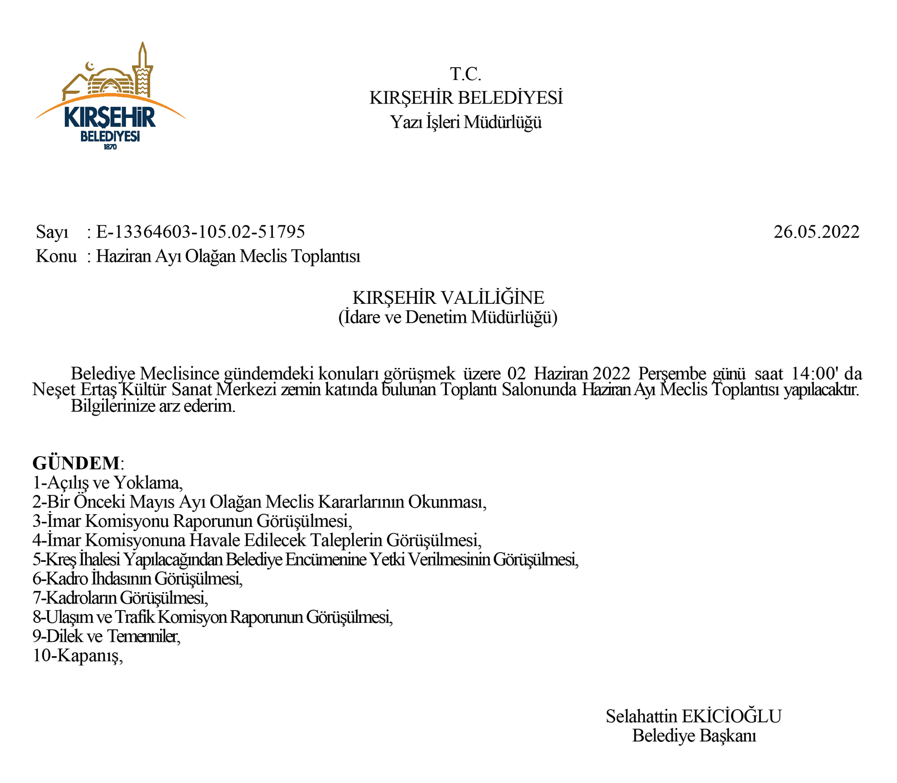 HAZİRAN AYI MECLİS GÜNDEMİ