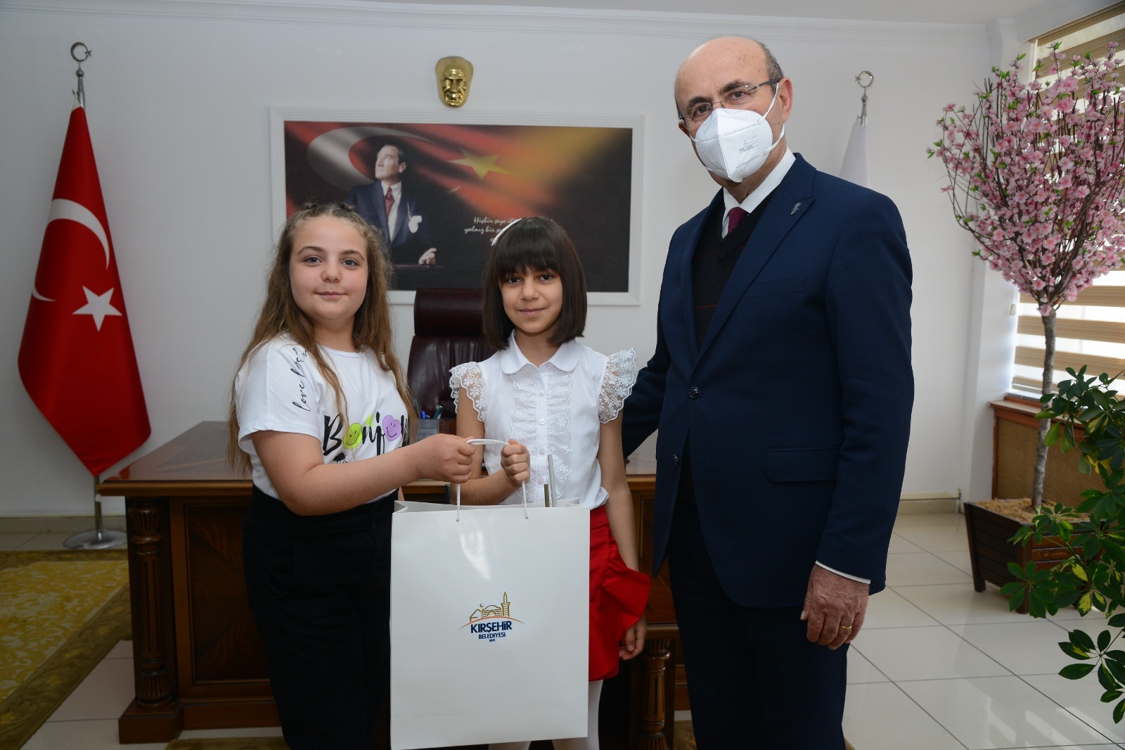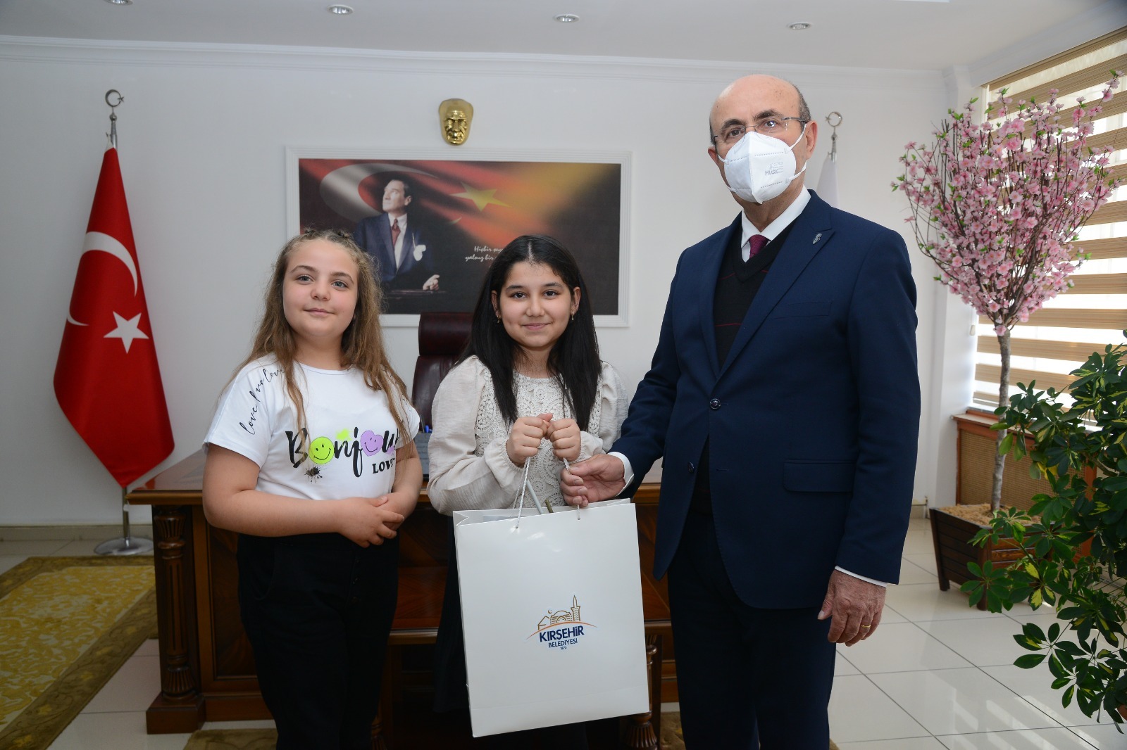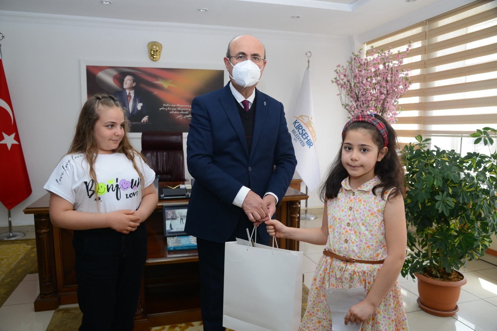 23 Nisan 2023 Pazar günü saat 10.30’da, Ahi Evran İlkokulu’nun Belediye Başkanımız Selahattin Ekicioğlu’nu makam ziyaretinde okul müdürü Bekir Değer, öğretmeni Gülseren Köysüren ve 3. Sınıf öğrencilerimiz Cansu Gökgöz, Metin Köysüren, Ahmet Özalp, Yağmur Bahar Güler ve 4. Sınıf öğrencilerimiz Azranur Aslan ve Zehranur Ala ile Bayram sevinci yaşandı.
