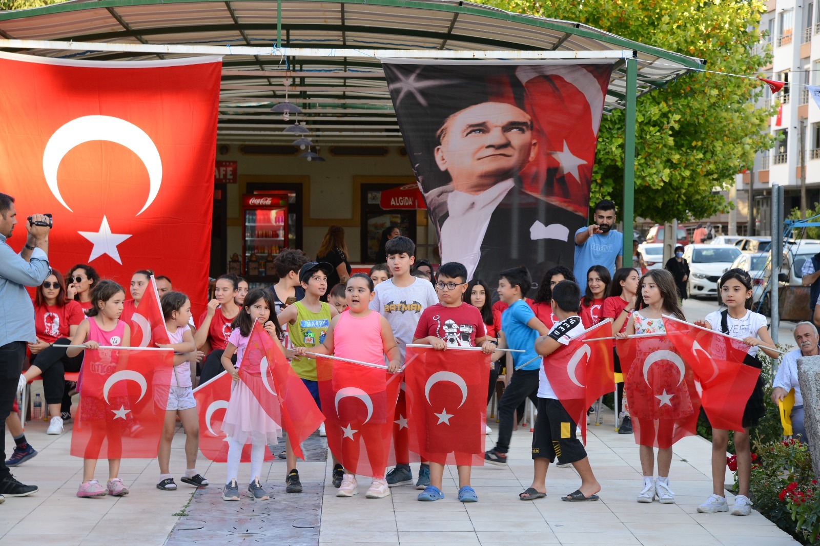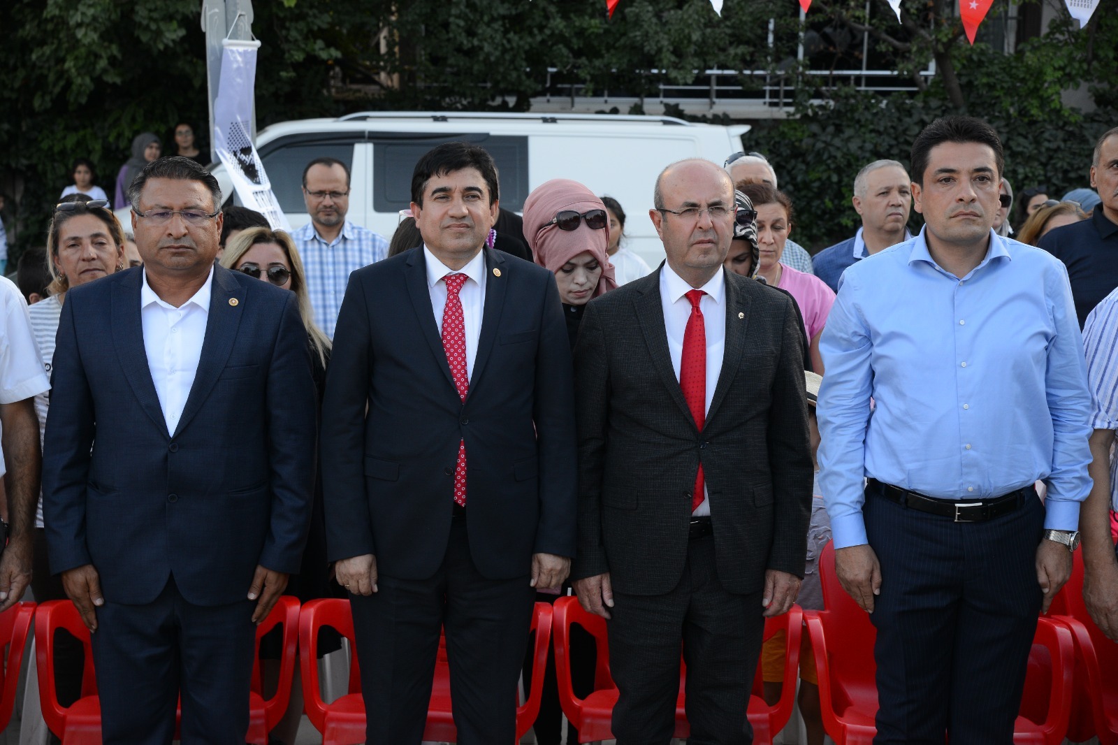 tarafından Cacabey Meydanı’ndaki Atatürk Anıtı önündeki törene katılan