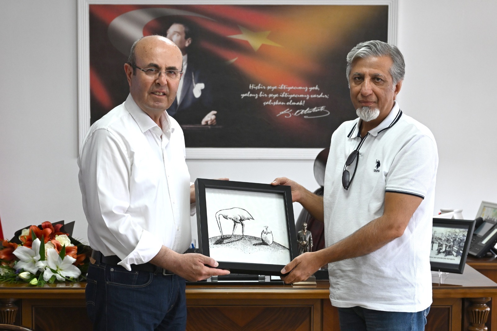 Kuşu karikatürünü hediye ettiler.