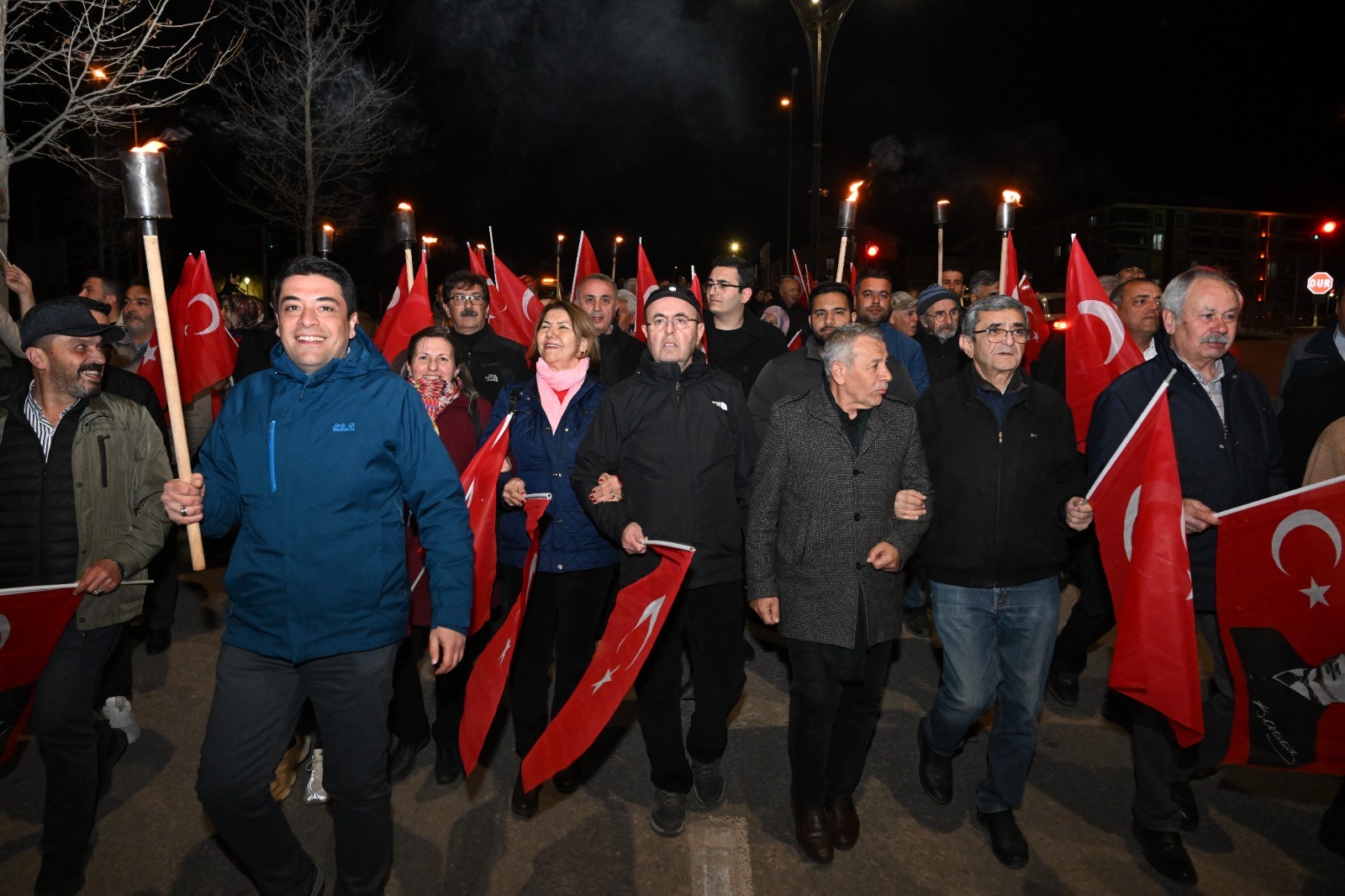 Meydanı’na meşaleli kortej yürüyüşü gerçekleştirildi. Lise Caddesi