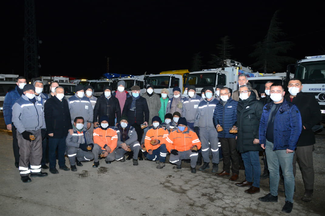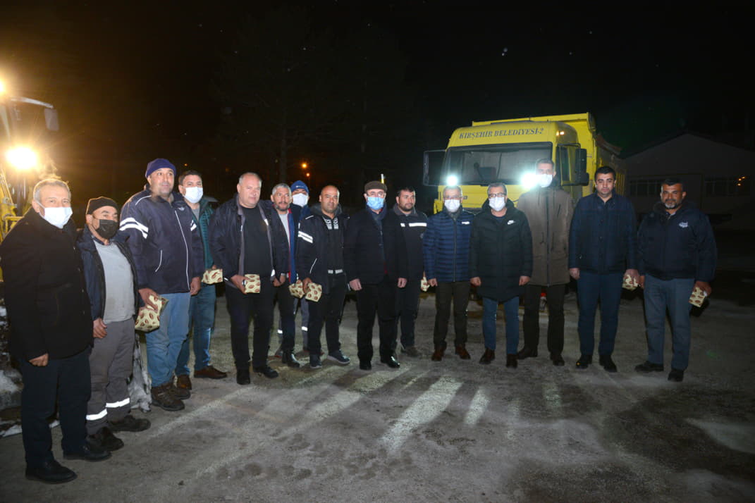 dolayısıyla gece mesaisindeki Belediye çalışanlarını ziyaret ederek kendilerine