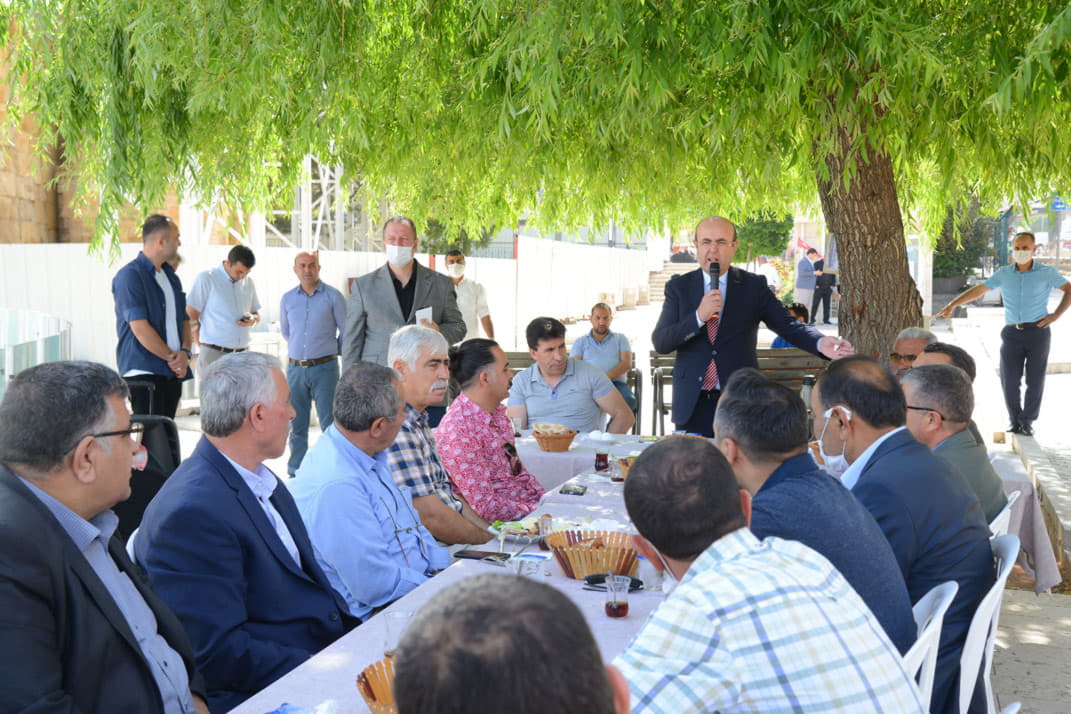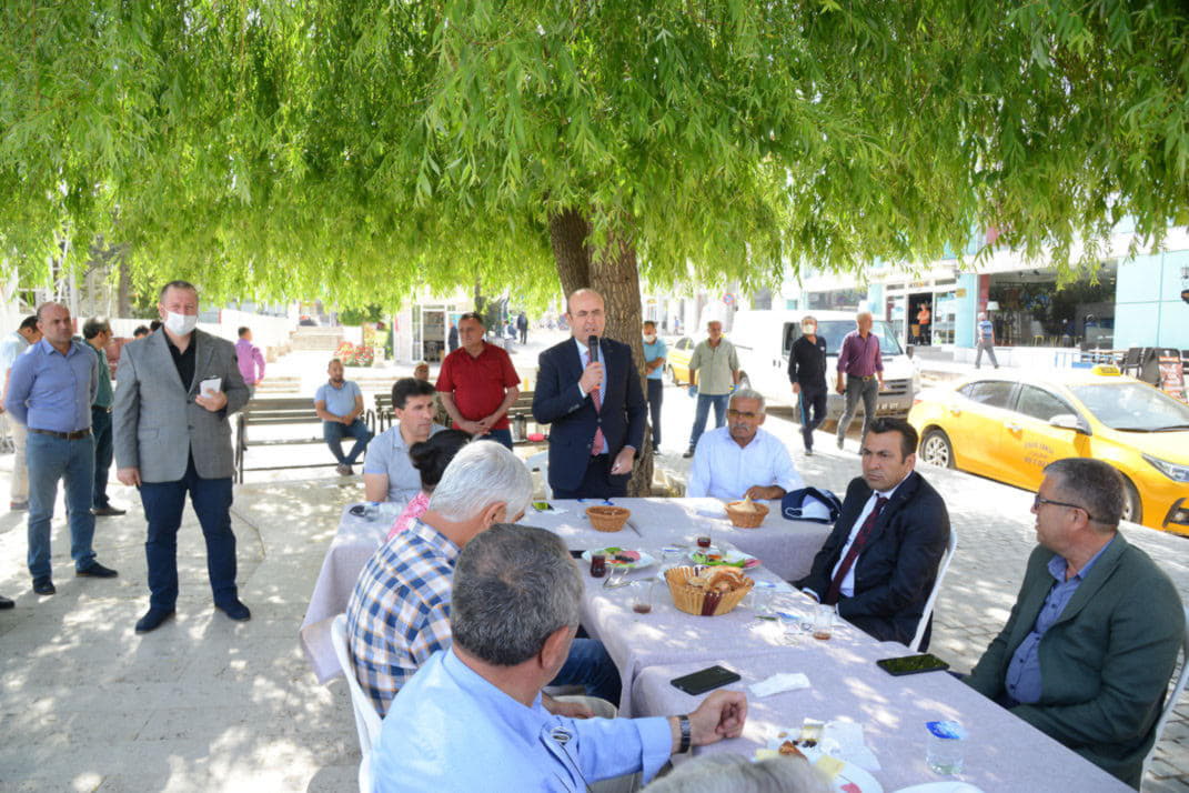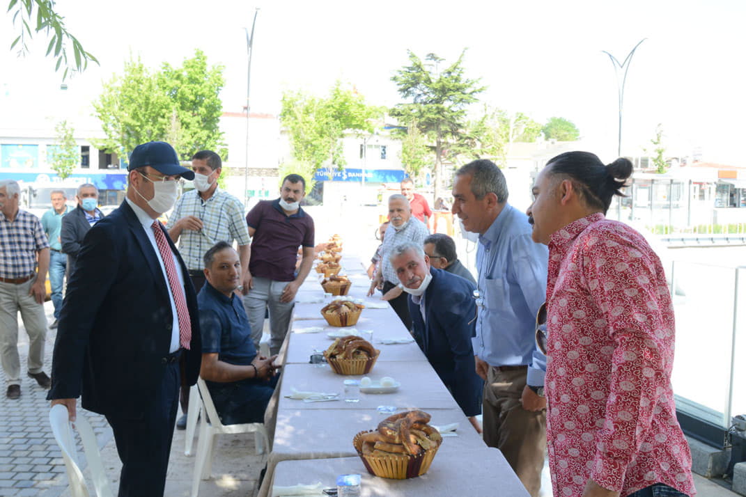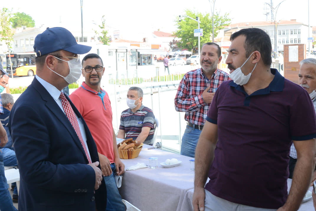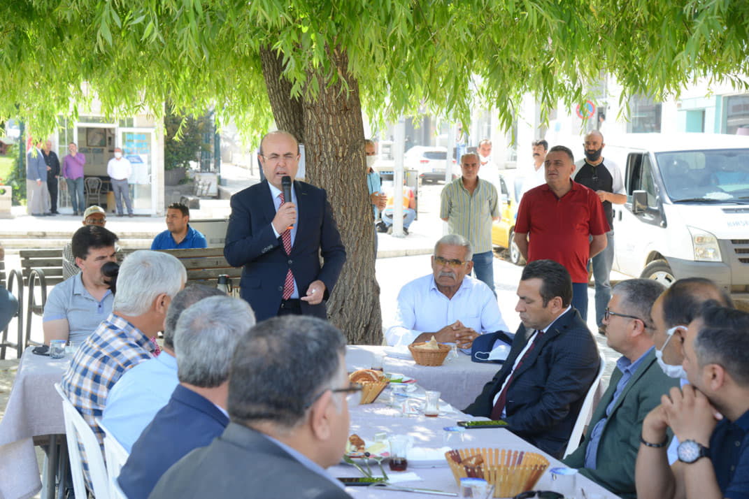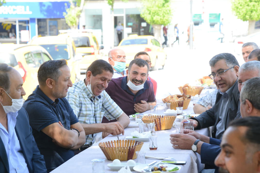 Caddesinde bulunan esnaflarla kahvaltıda bir araya geldi.