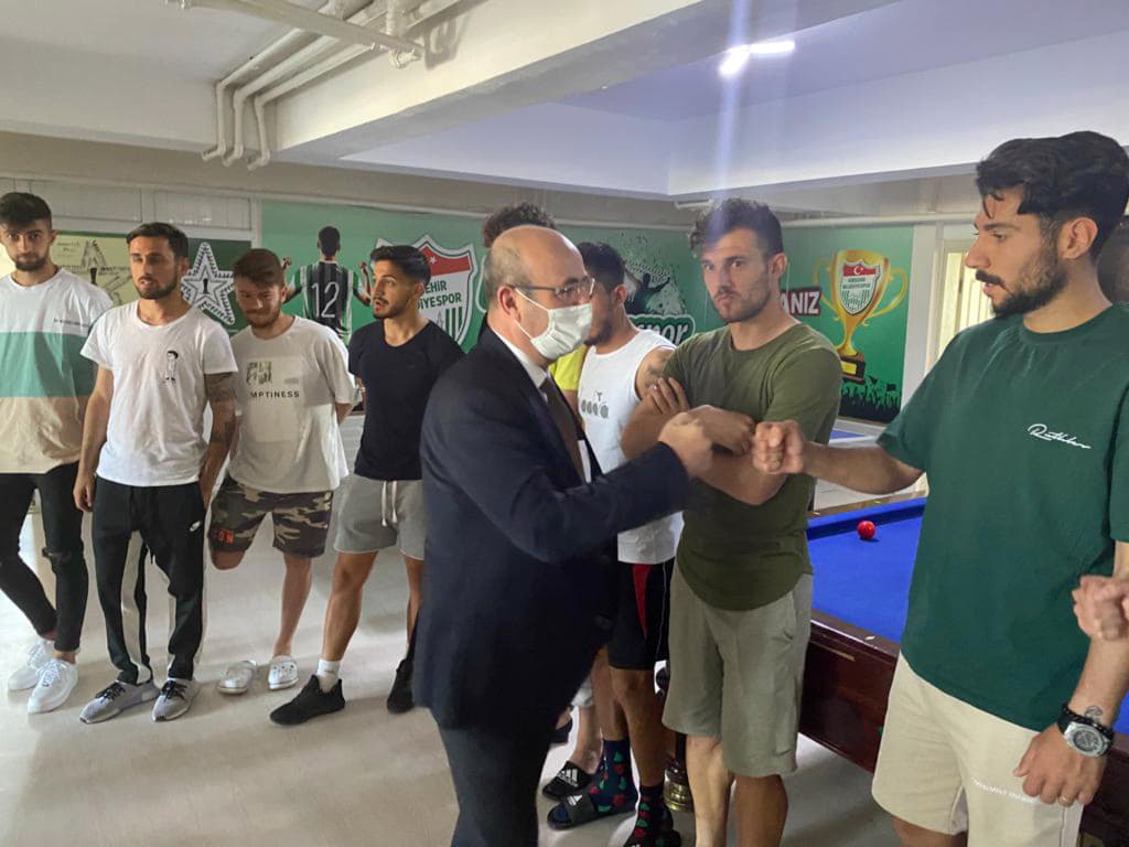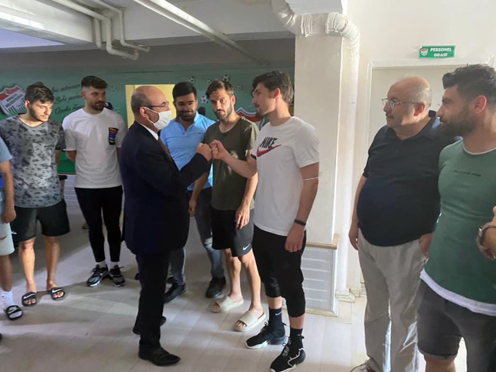Güneykent Tesisleri’nde ziyaret ederek furbolcular, teknik heyet ve yönetim