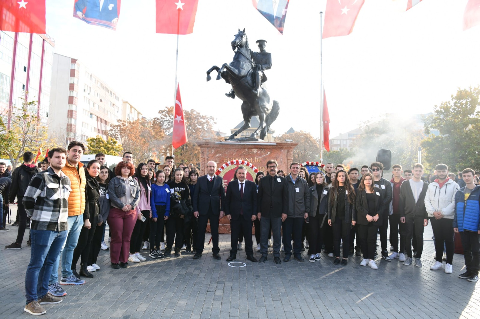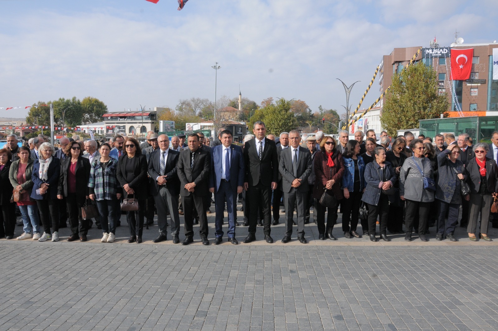Belediye Başkanımız Selahattin Ekicioğlu, 10 Kasım 2023 Cuma günü il protokolü ile birlikte, Ulu Önderimiz Mustafa Kemal Atatürk’ü anmak üzere Cacabey Meydanı’ndaki Atatürk Anıtı Önündeki Törene katıldı.