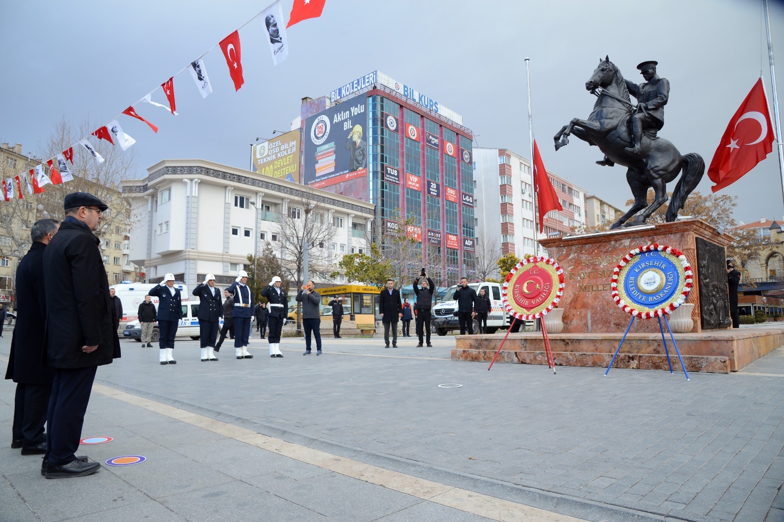 Cacabey Meydanı’ndaki Atatürk Anıtına Valilik ve Belediye Başkanlığı Çelenkleri