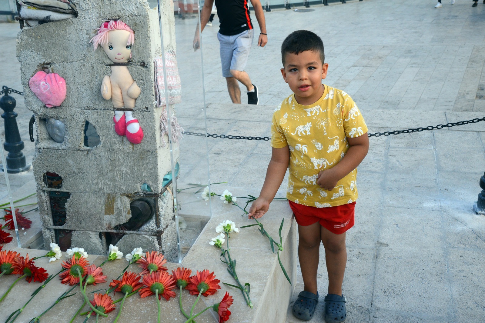 Deprem Anıtı kolonunun içinde sembolik olarak depremde hayatını kaybeden çocuklarımızın oyuncakları, kitapları, vatandaşlarımızın eşyaları bulunuyor.