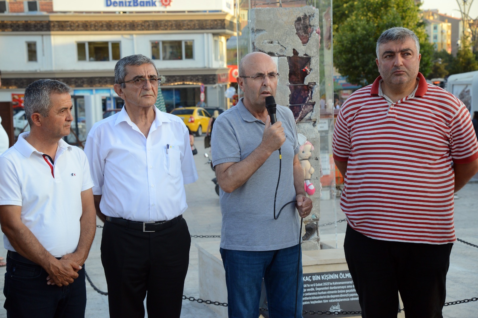 Başkanımız Ekicioğlu’nun konuşmasının ardından, Deprem Anıtı’na karanfiller bırakıldı.