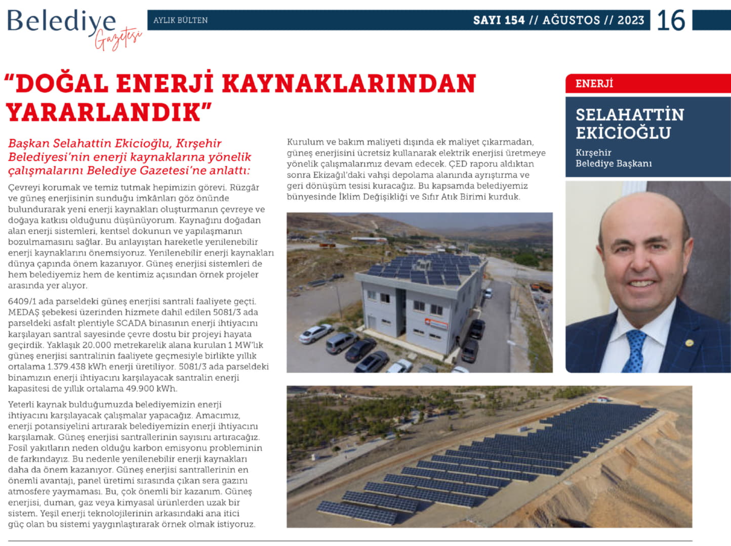 enerji kaynaklarına yönelik çalışmalarını Belediye Gazetesi’ne anlattı