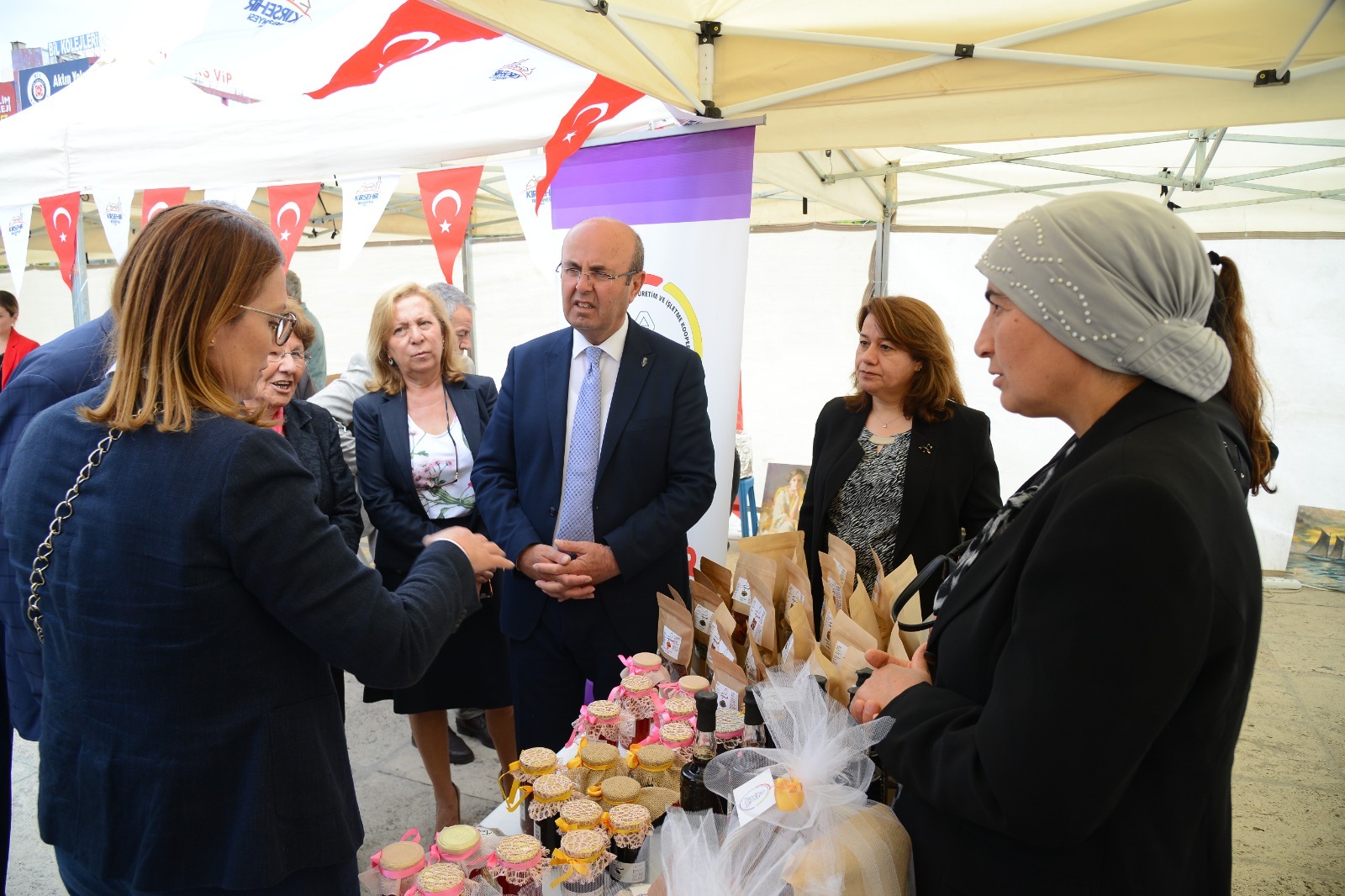 düzenledikleri Kadın Emek Pazarı'nın açılışını KESOB Başkanı Bahamettin Öztürk