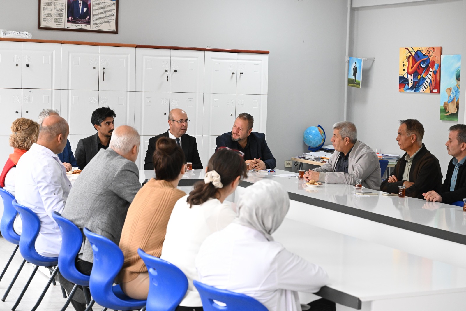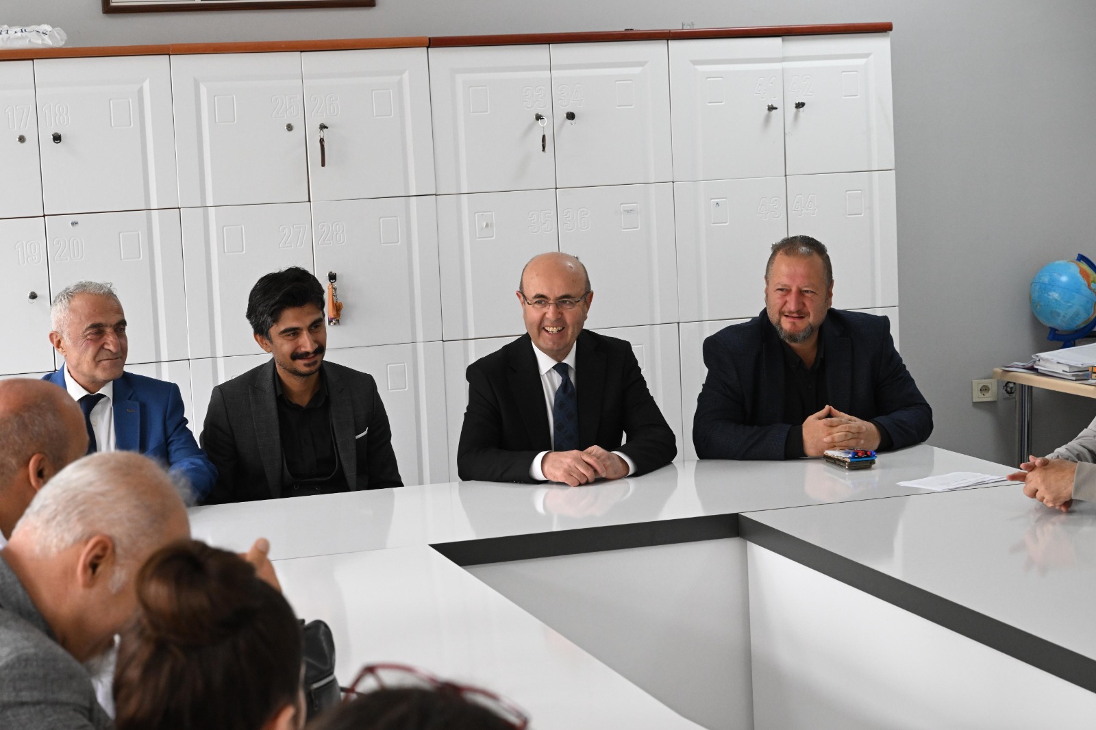 ederek öğrenci, öğretmen ve idarecilerle bir araya geldi.