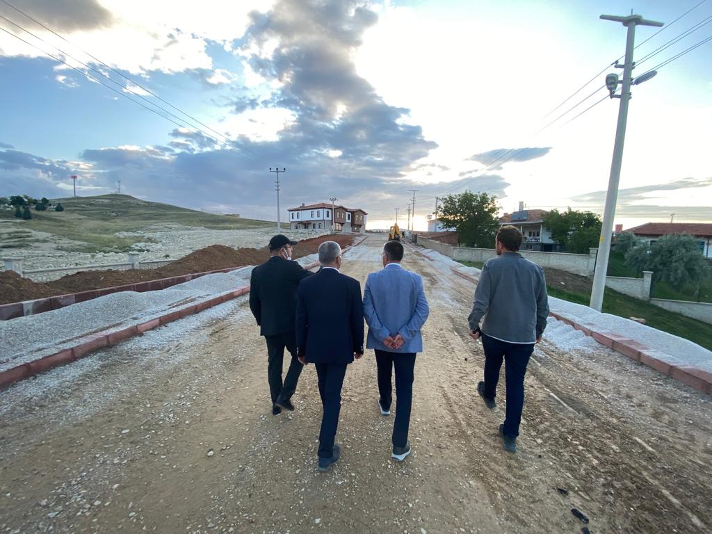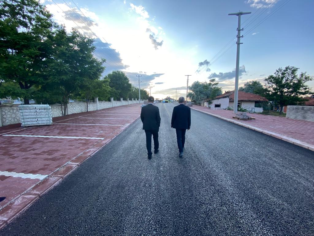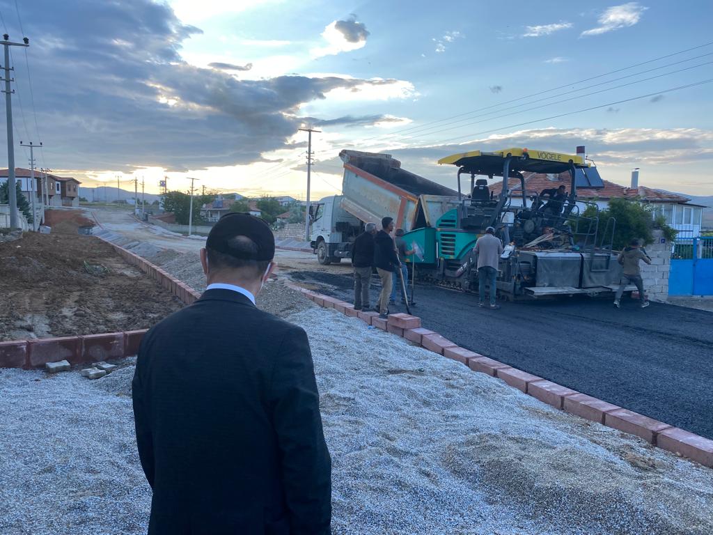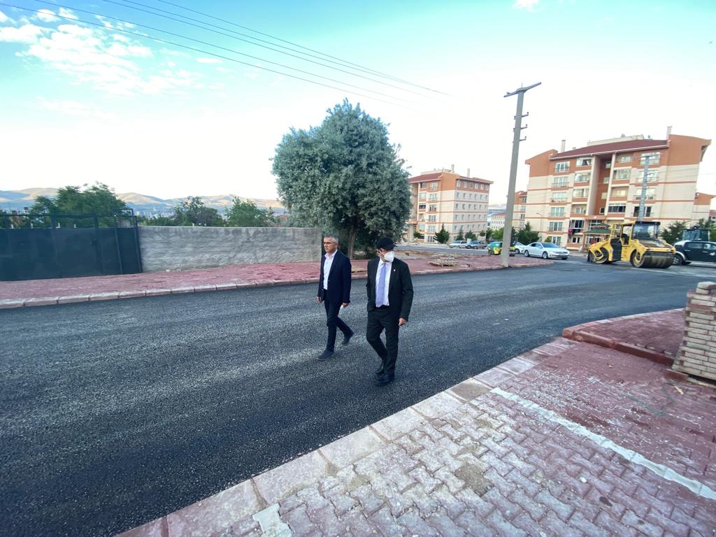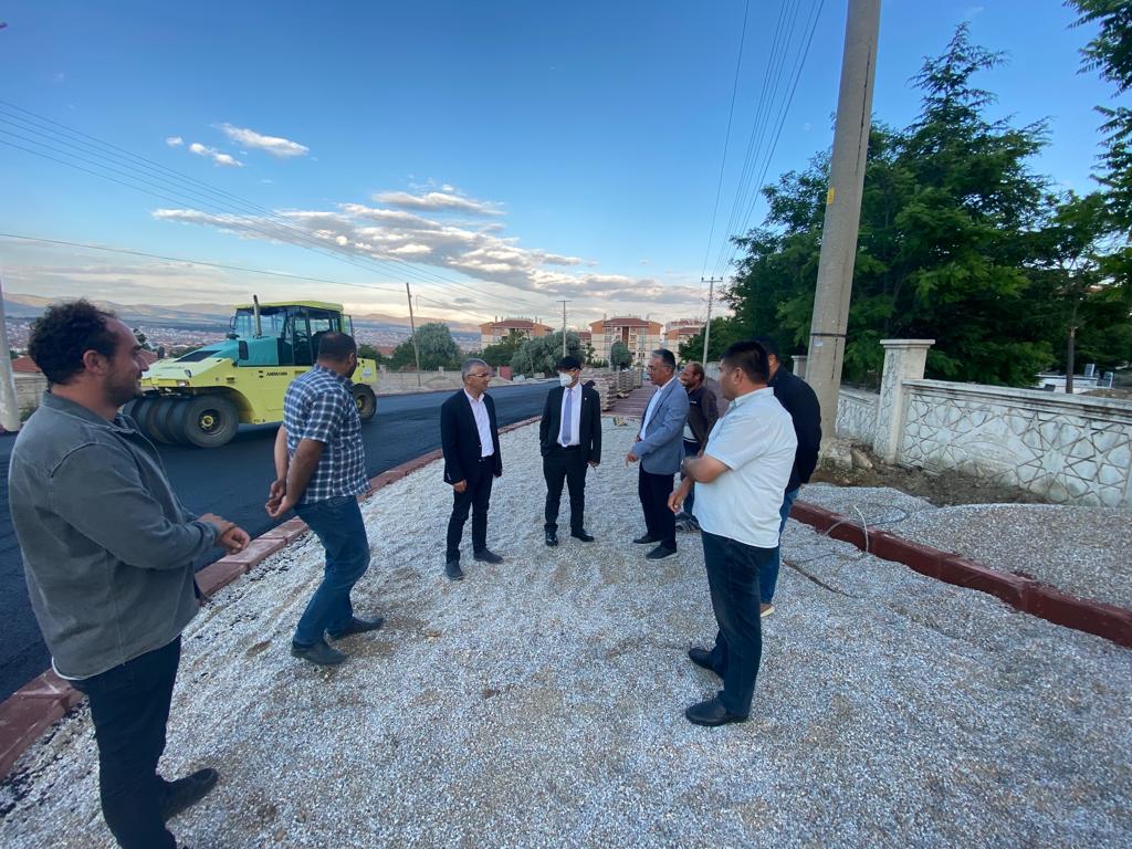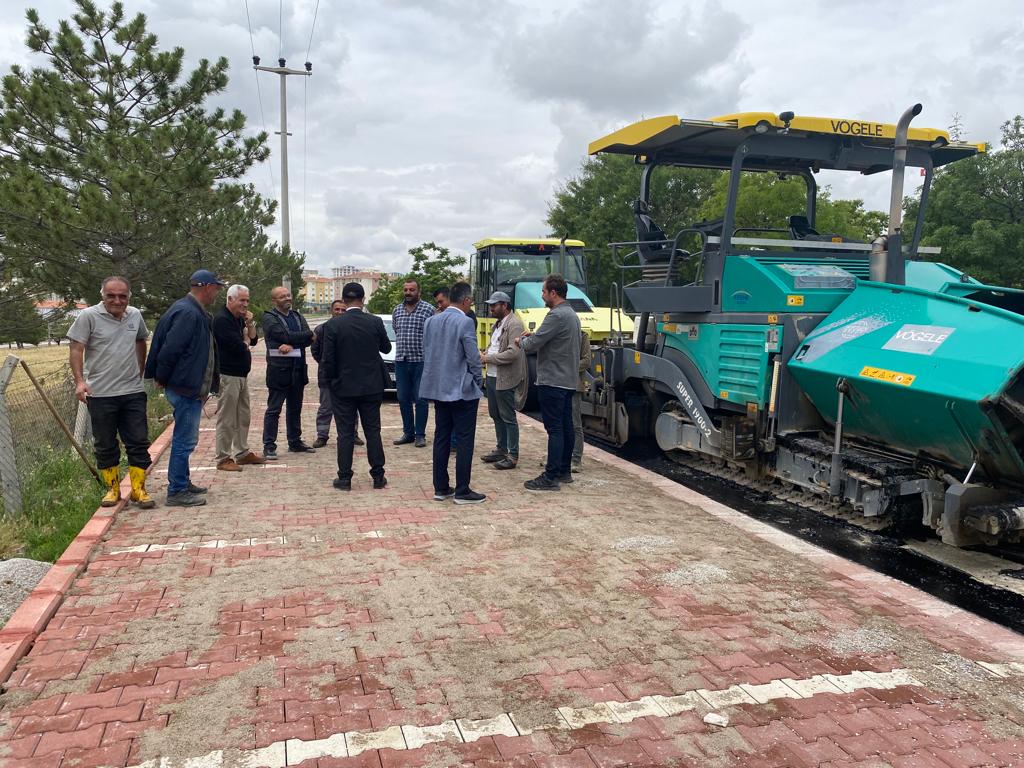 devam eden sıcak asfalt, kaldırım ve sert zemin çalışmalarını yerinde inceleyen
