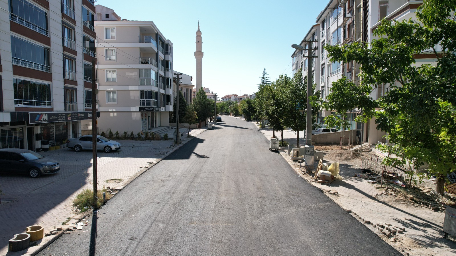 noktalarında sıcak asfalt, kaldırım, kilitli parke, üstyapı ve peyzaj