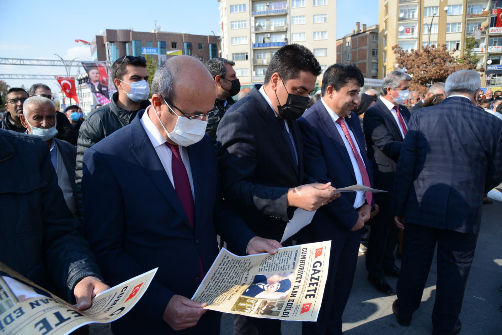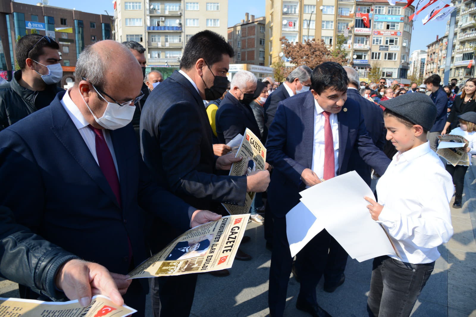 Konuşmaların ardından Cumhuriyet Çocukları tarafından Cumhuriyetimizin kuruluşunu simgeleyen gazete dağıtımı sembolik olarak gerçekleştirildi.