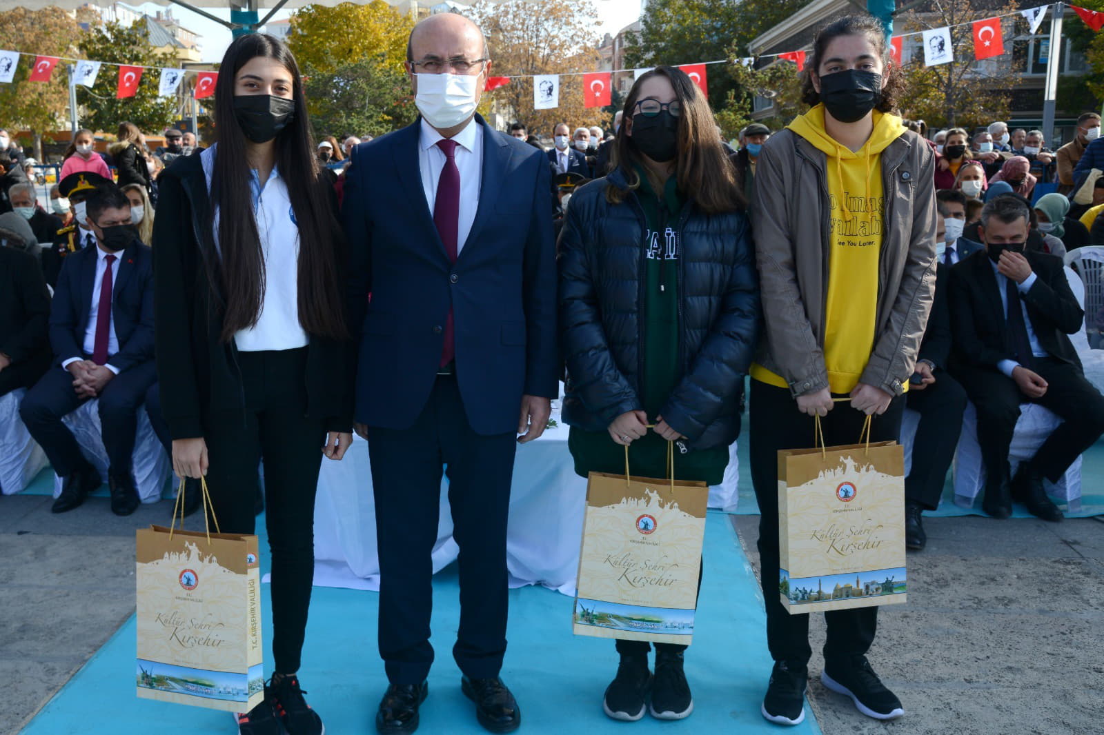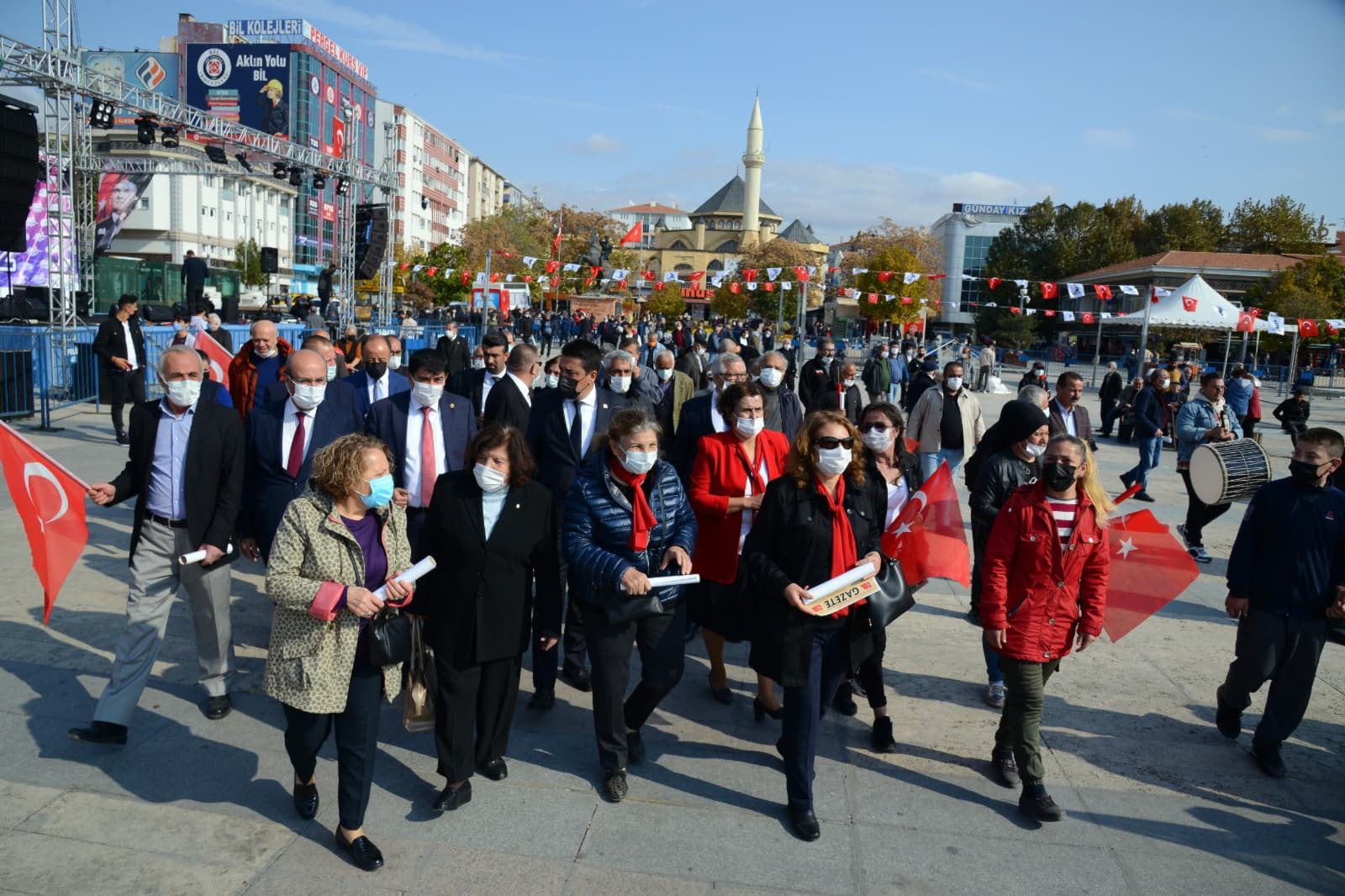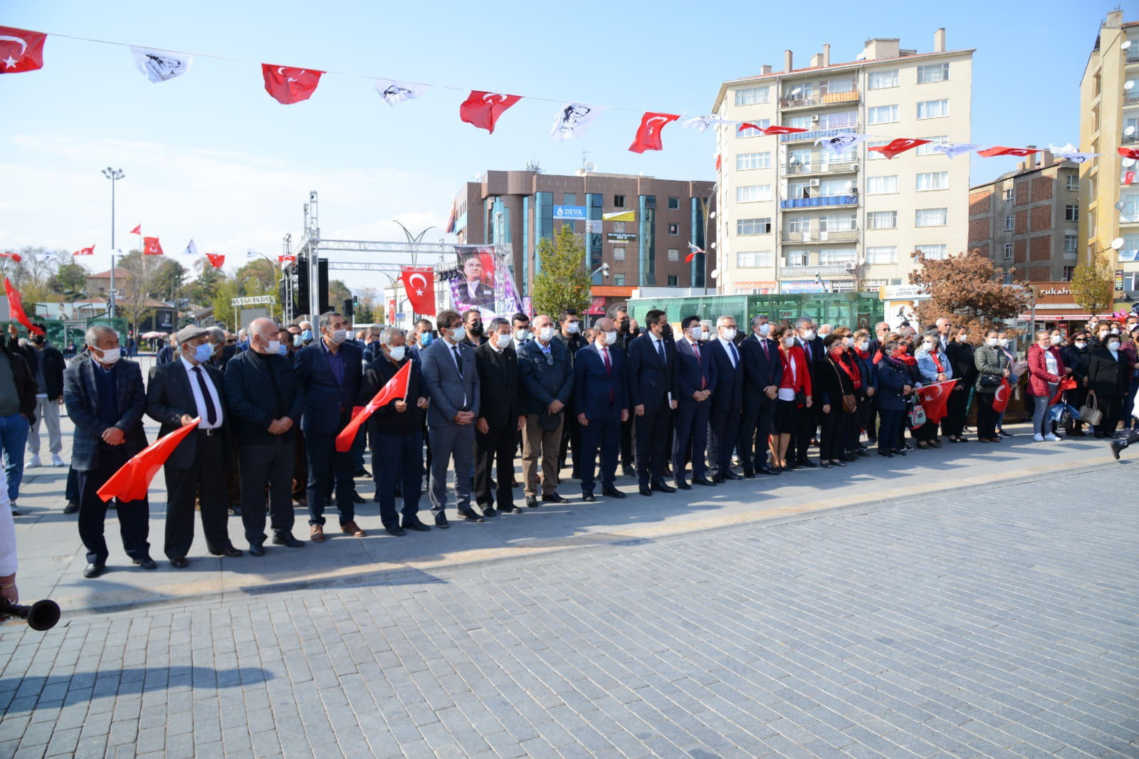 Konuşmaların ardından Kırşehir Belediyesi Bando Takımının çaldığı marşlar eşliğinde İş Bankası önündeki Atatürk Büstü önüne gelindi.