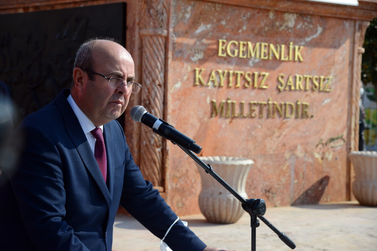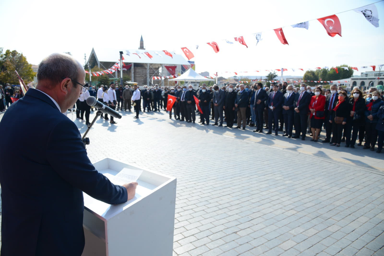 Saat 13:30’da CHP İl Başkanlığı tarafından yine CacabeyMeydanı Atatürk Anıtı önündeki kutlama programına da katılan Başkanımız Ekicioğlu CHP İl Başkanı Ecz. Şeref Baran Genç’in kutlama konuşmasının ardından bir konuşma gerçekleştirdi. Başkanımız Ekicioğlu, konuşmasında şunları ifade etti: