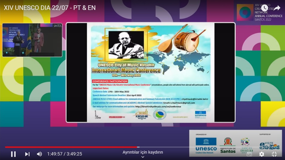 18-22 Temmuz 2022 tarihinde Brezilya-Santos’ta(Unesco Film Şehri) düzenlenen; 2023’te ise İstanbul’dadüzenlenecek olan tüm yaratıcı 7 alanın (edebiyat, müzik, medya sanatları, tasarım, el sanatları, film, gastronomi) genel toplantısı 14. UNESCO GENELYILLIK TOPLANTISIyapıldı.