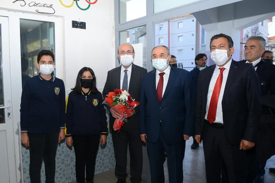 Ortaokulu ve Yusuf Sıddık Demir Anadolu Lisesi'nde öğretmen ve müdürlerle bir