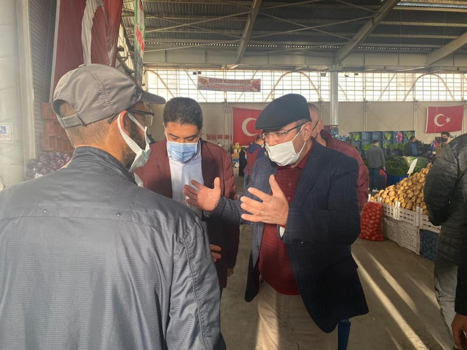 bulunan tüm esnafı ziyaret ederek sıkıntılarını da dinleyen Başkanımız