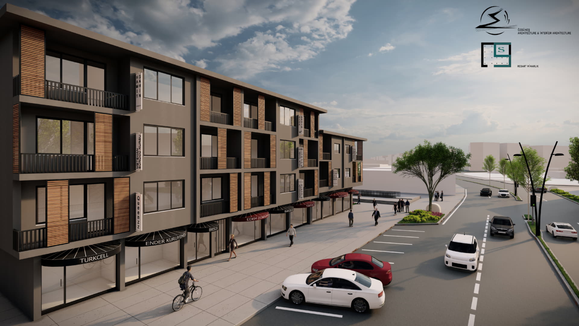 ana caddelerinde yer alan binaların dış cephelerinin birbiriyle uyumlu