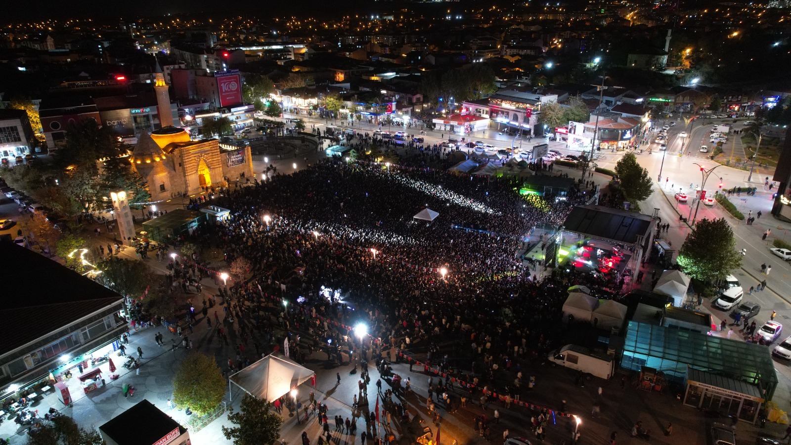 tebriklerin kabulünün ardından, Cacabey Meydanı’ndaki kutlama programına