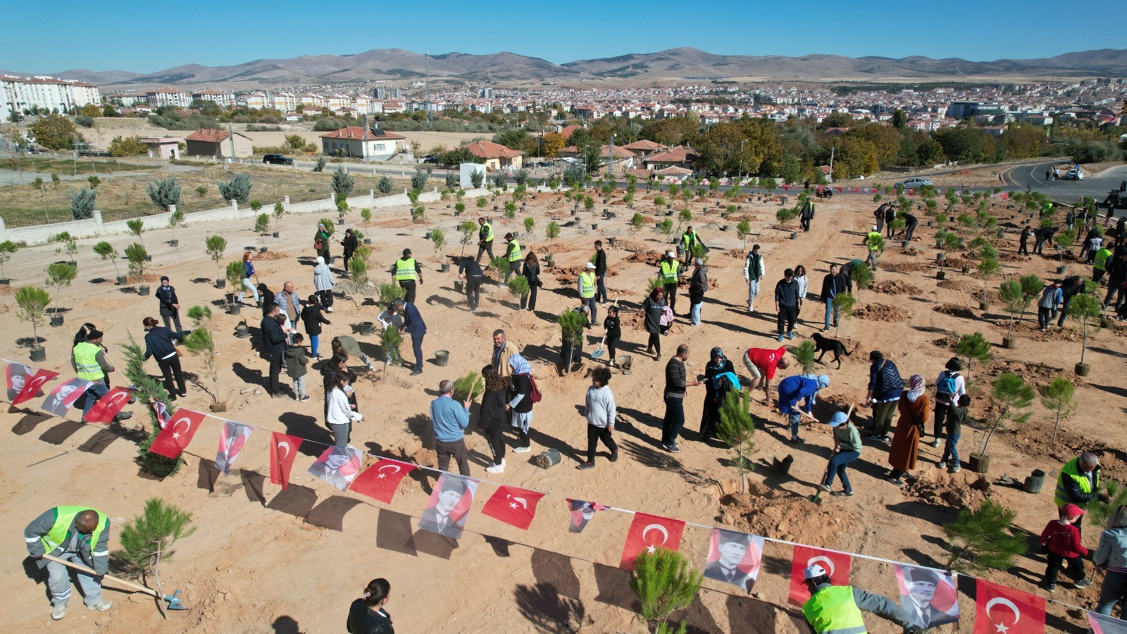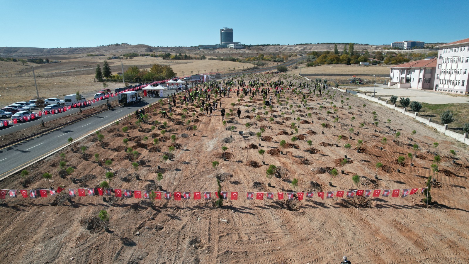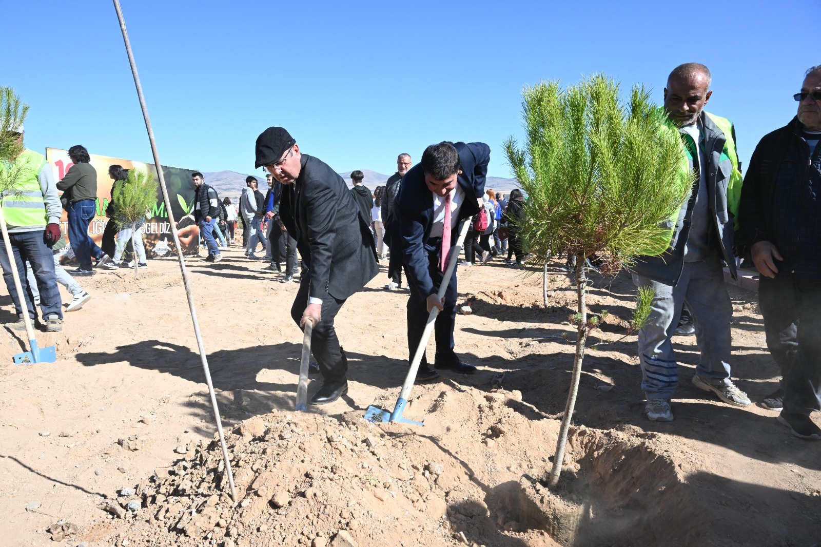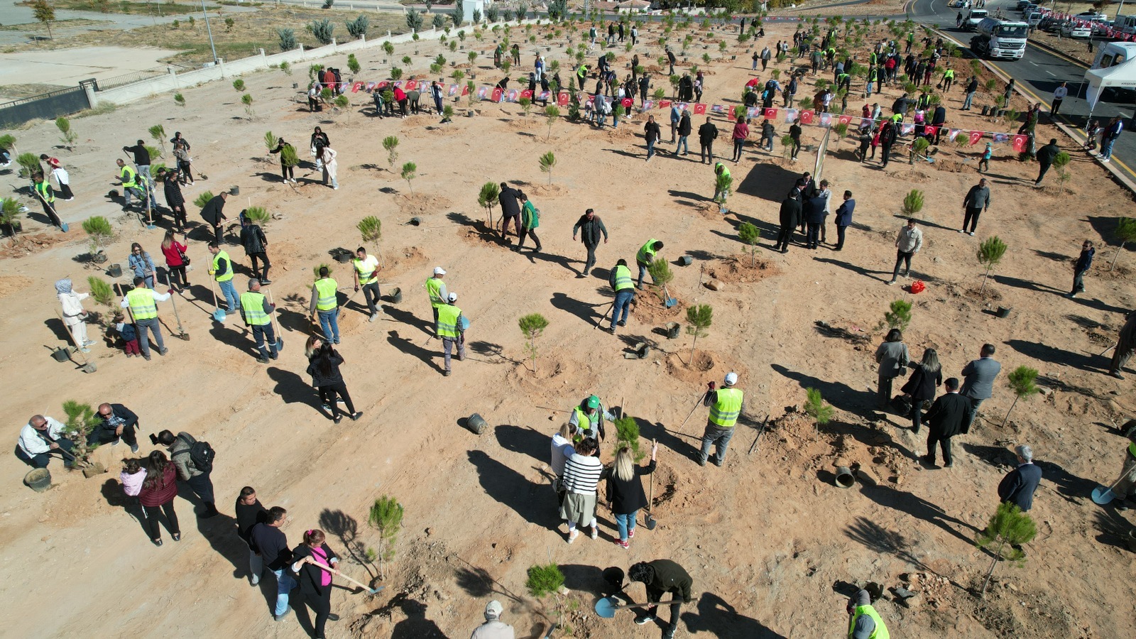Lisesi yanındaki alanda Fidan Dikme etkinliğinde 500 fidanın toprakla
