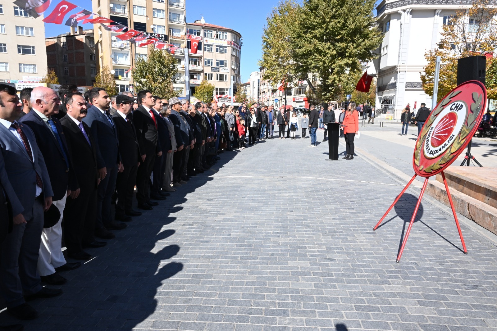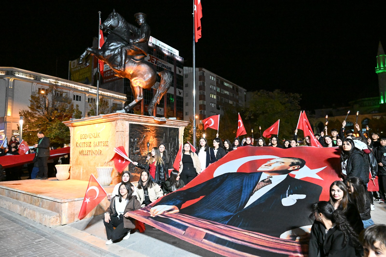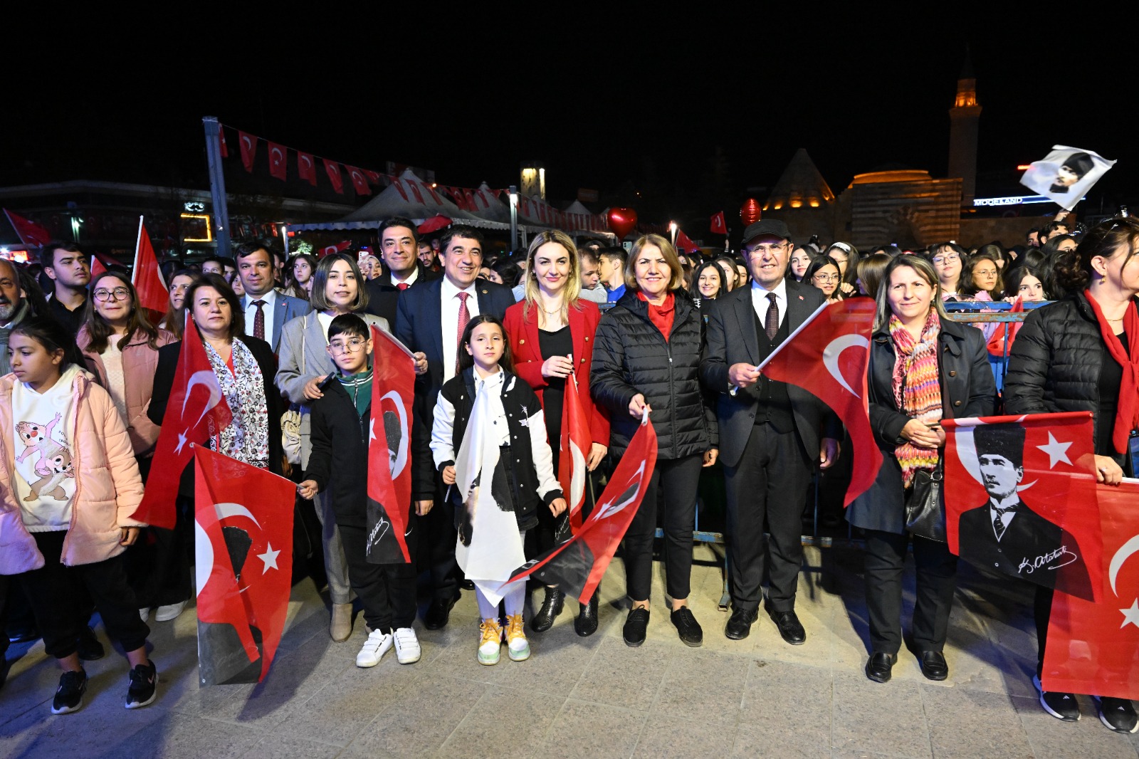 parti örgütüyle birlikte Cacabey Meydanı’ndaki Atatürk Anıtı önünde kutlanan