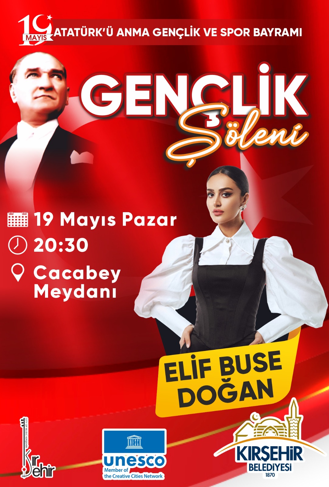 MEYDANI’NDAKİ “19 MAYIS GENÇLİK KONSERİ”NDE ELİF BUSE DOĞAN SAHNE ALACAK