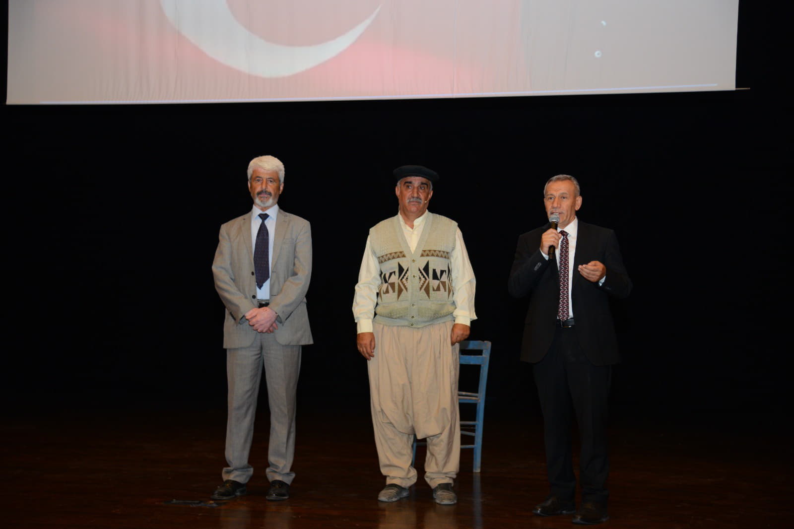 gösterimi sonrasında oyuncu-yönetmen Sait Sargın’a çiçek takdimi yapıldı.