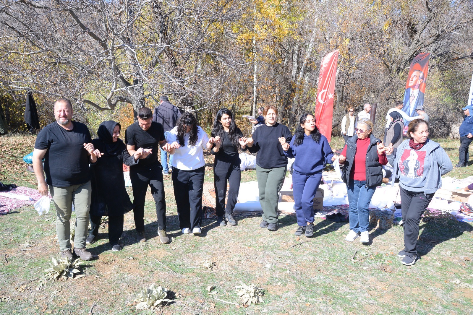 Katılımcılar halay çekerek, şarkılar söyleyerek Cumhuriyet Bayramı coşkusunu