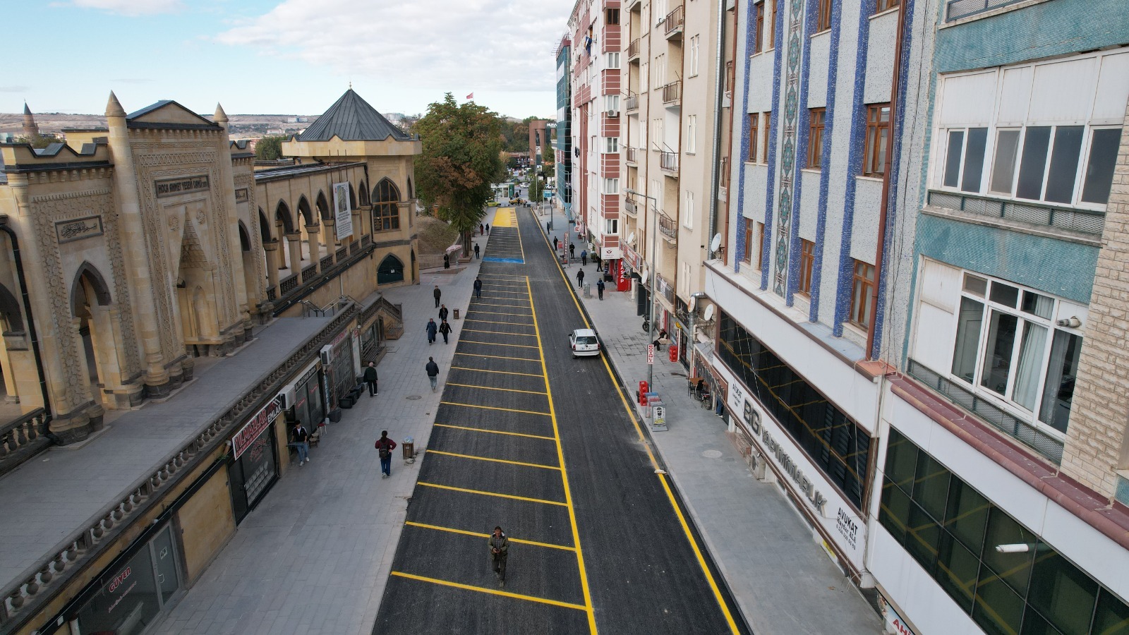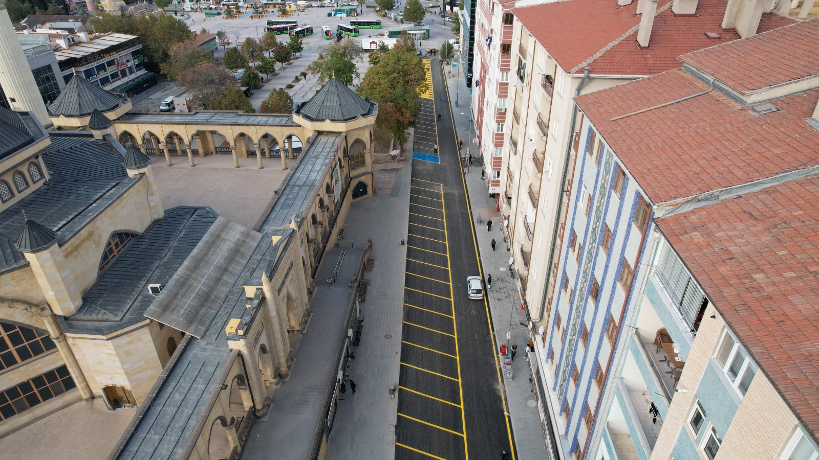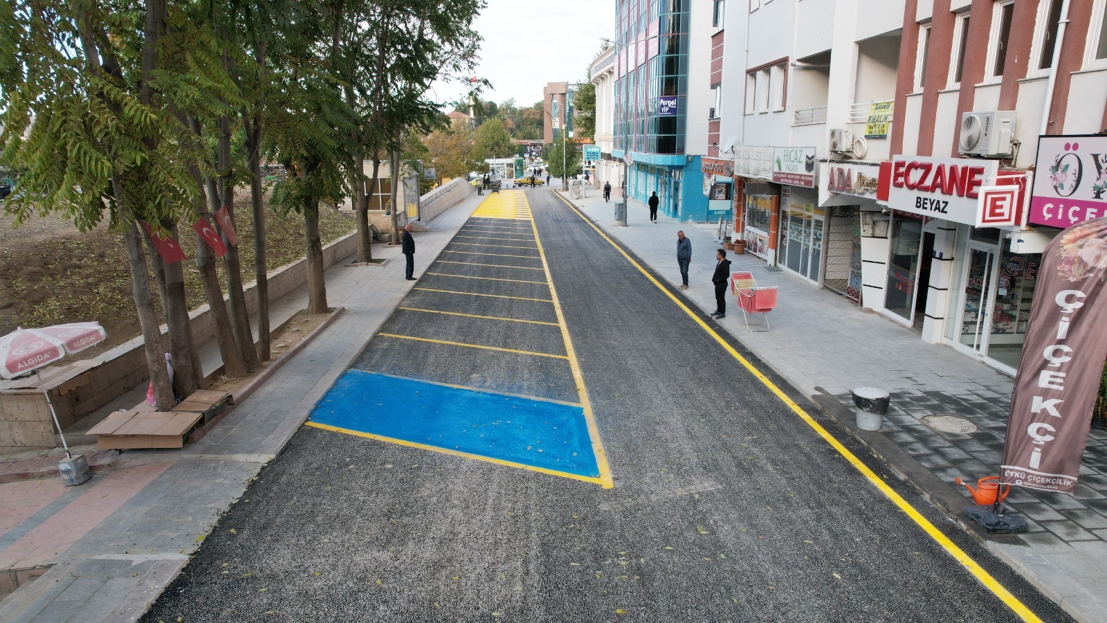parkı, yol çizgileri ve park alanı ile birlikte yepyeni bir görünüme kavuştu.