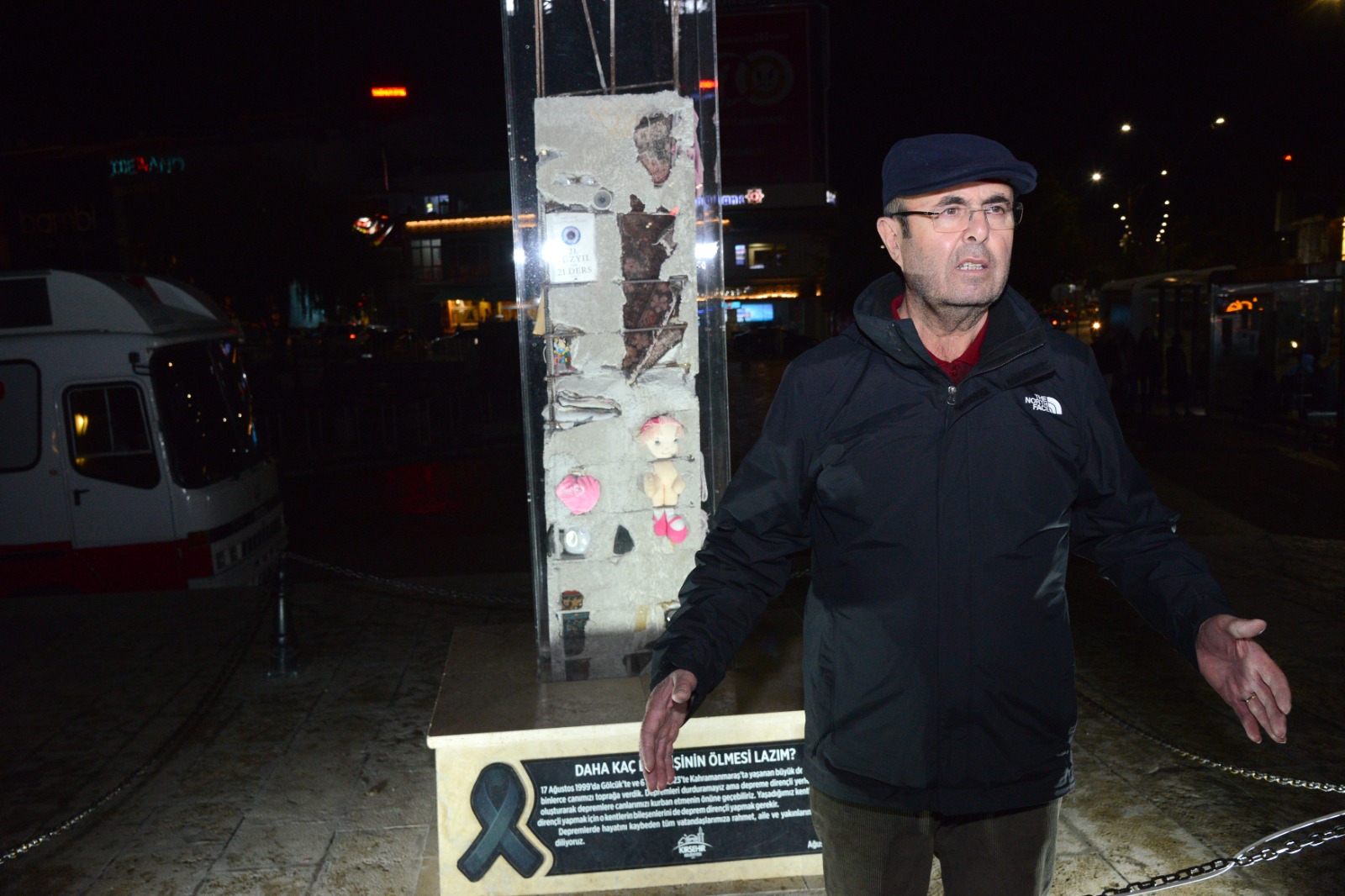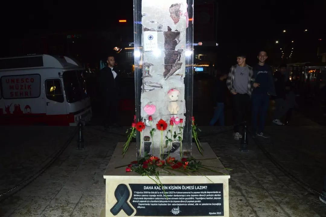 Kasım 2023 Pazar günü saat 18:57’de Cacabey Meydanı’ndaki Deprem Anıtı önünde