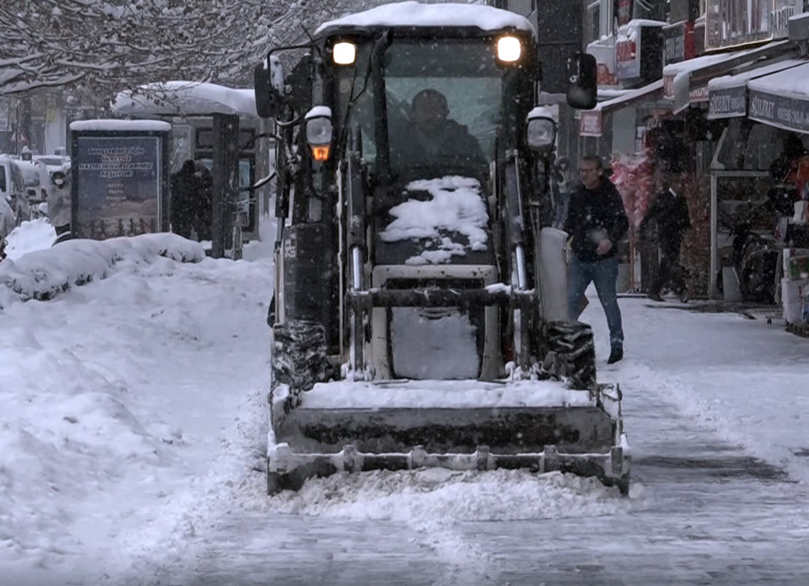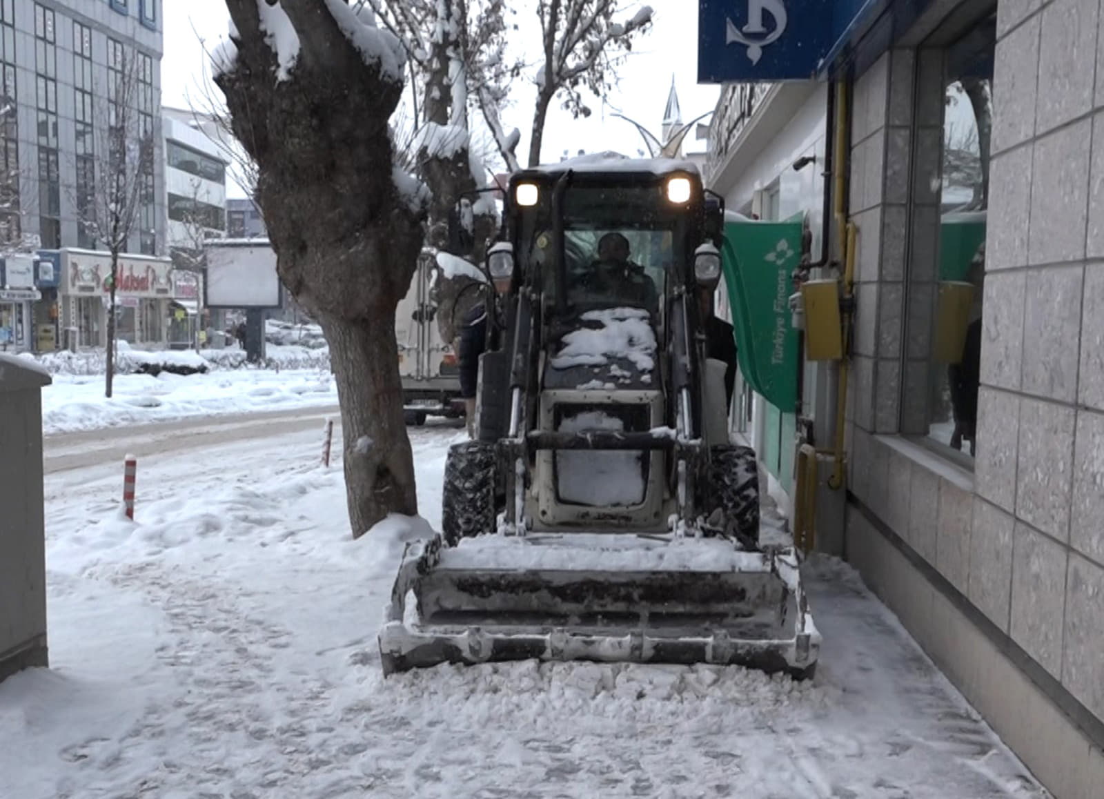 Bobcat kar temizleme aracının kaldırımlarda çalışmaya başlamasıyla birlikte biriken karlar toplanarak yaya trafiğinin rahatlaması sağlandı.