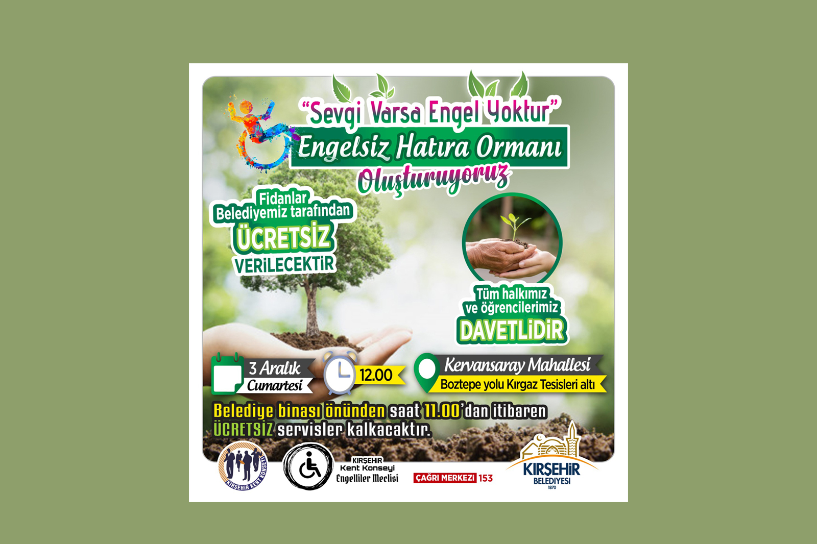 ve fidanların Belediyemiz tarafından ücretsiz olarak verileceği Engelsiz Hatıra