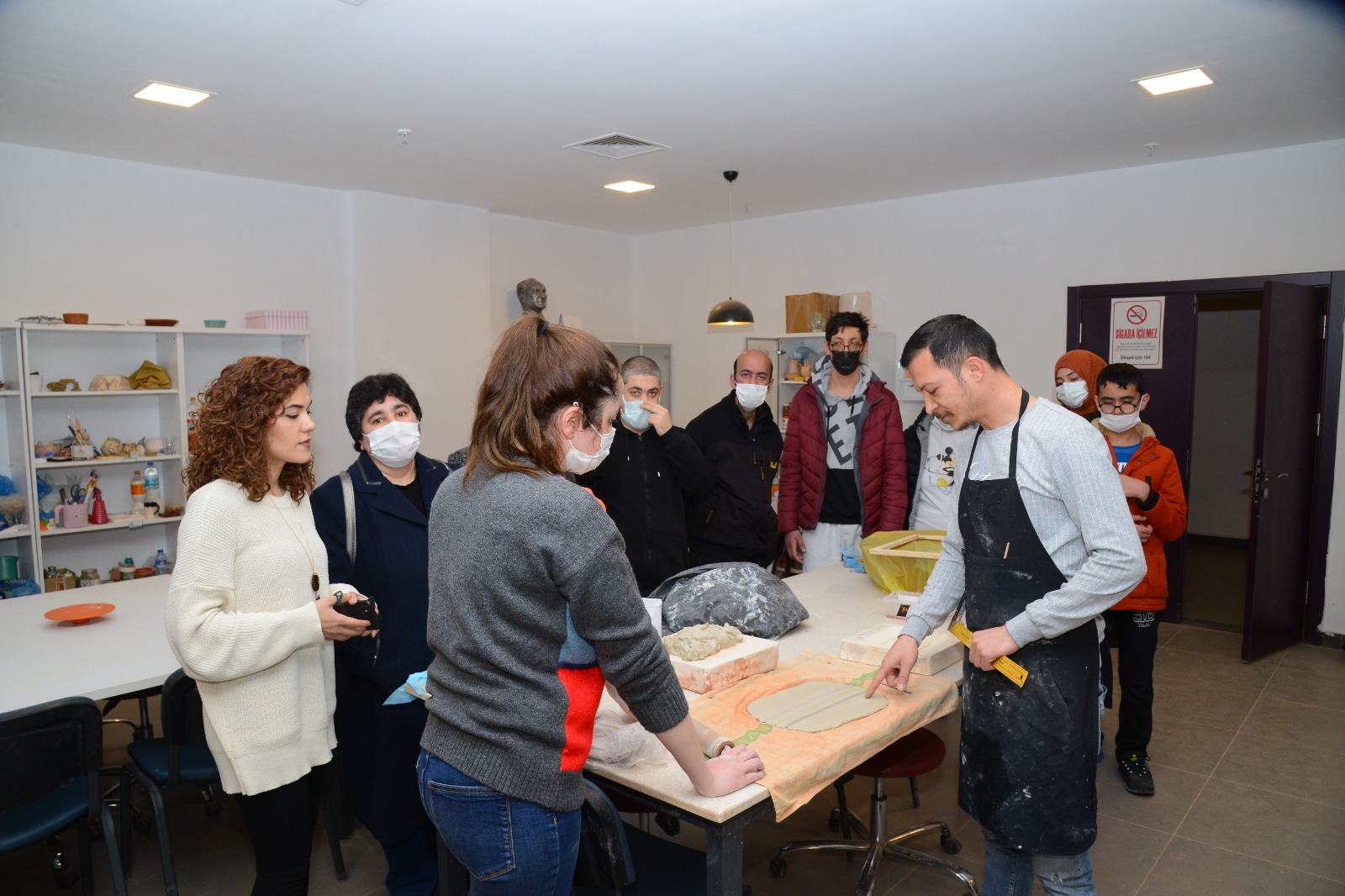 Kervansaray Engelsiz Yaşam Merkezi öğrencileri 21 Şubat 2022 Pazartesi günü Neşet Ertaş Kültür Sanat Merkezi'ni ziyaret ederek atölyelerdeki kursları incelediler.