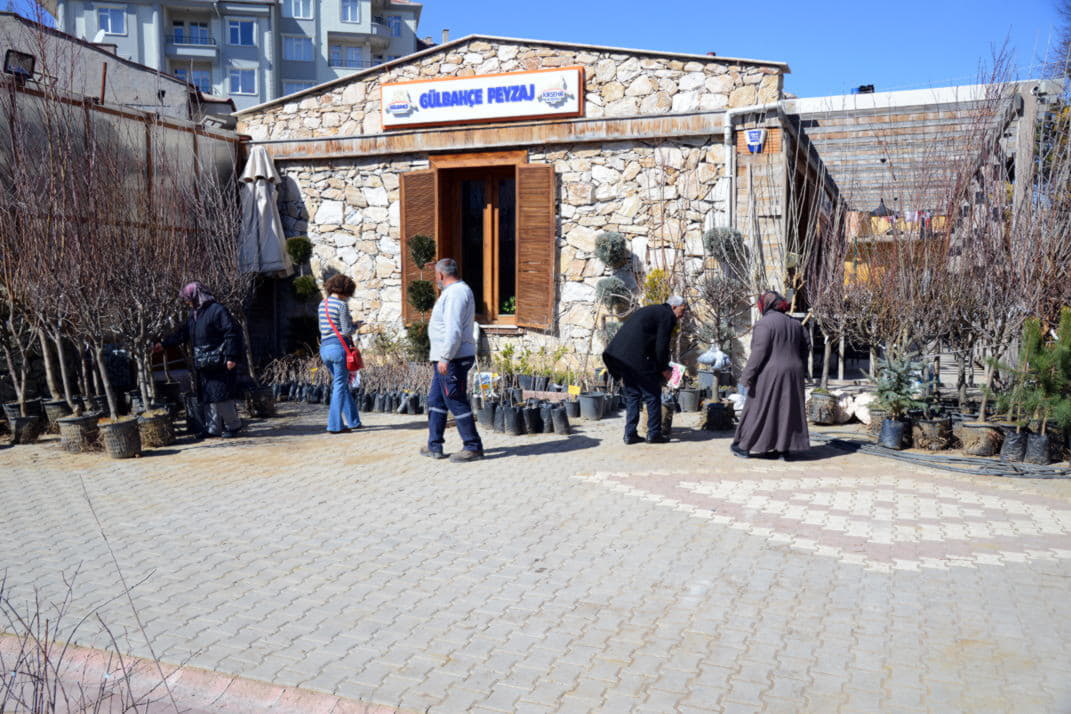ağaç, çalı ve bahçe ekipmanları satışa sunulmaktadır. Bitki satışlarının yanı