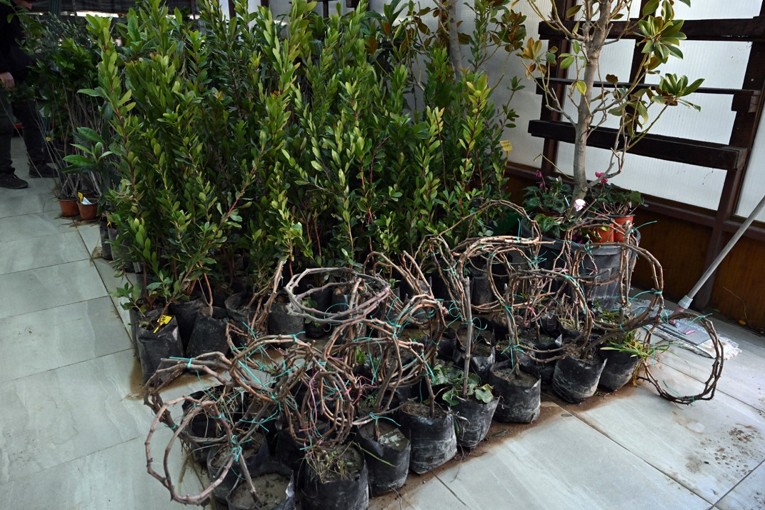 çiçek, ağaç, çalı ve bahçe ekipmanları satışa sunuluyor. Yine aynı