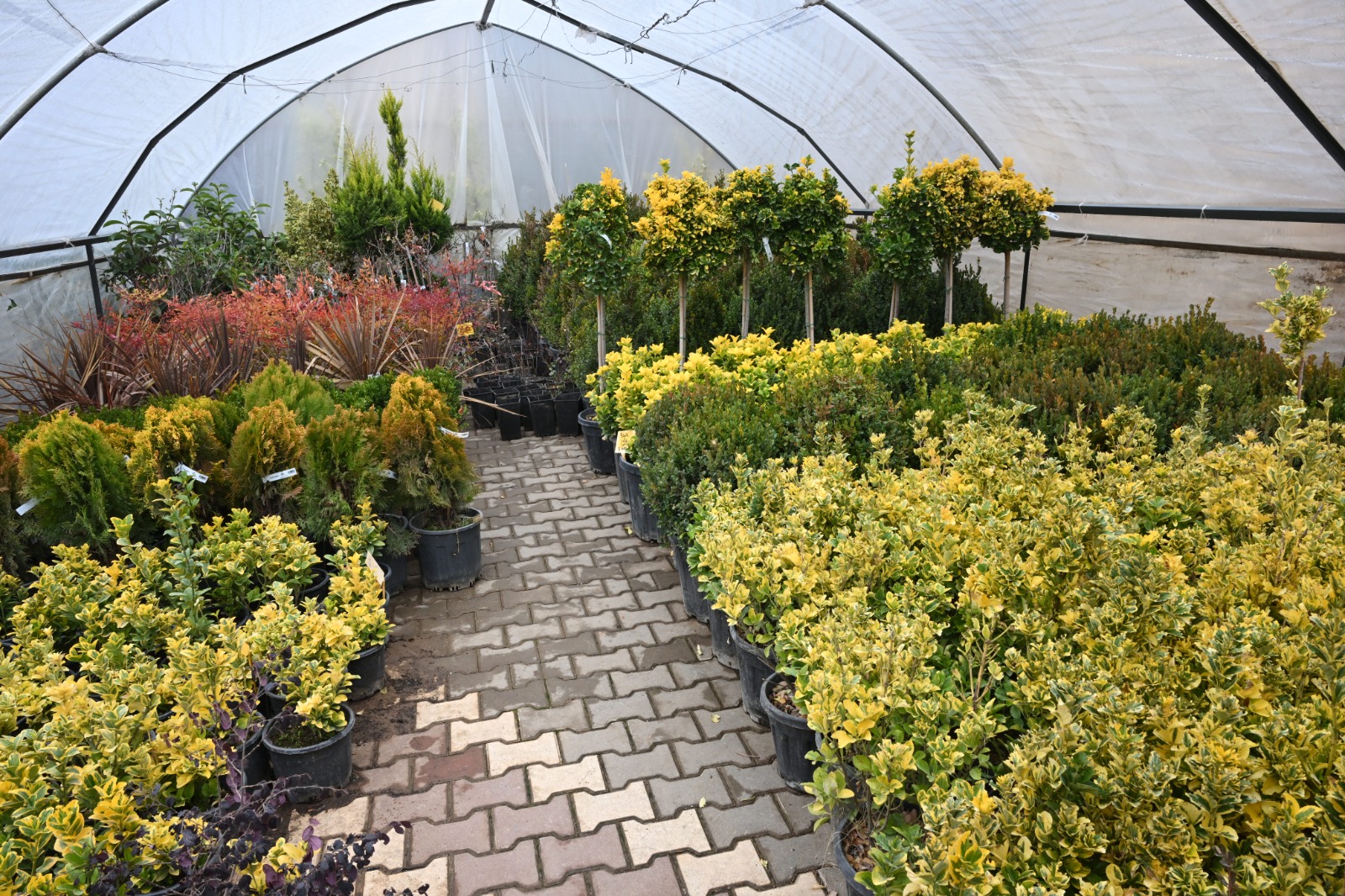 Gülbahçe Peyzaj ve Çiçek Satış Evi’nde çiçekler, graslar, sera bitkileri ve