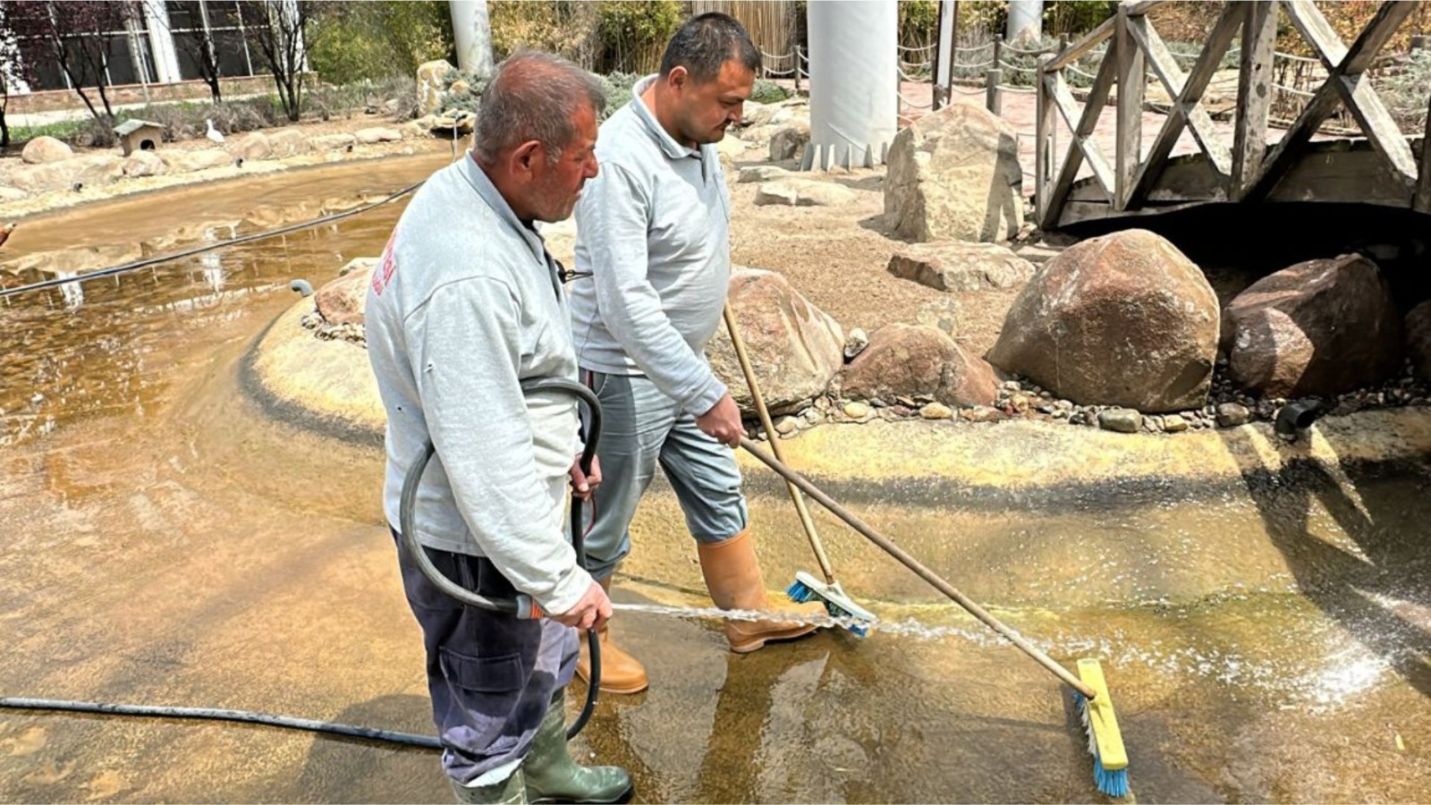 Yine kanatlı hayvanların sağlıklı bir ortamda yaşamlarını sürdürebilmeleri için haftada iki gün havuz temizliği de yapılıyor.