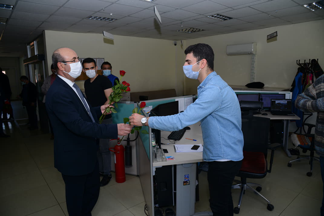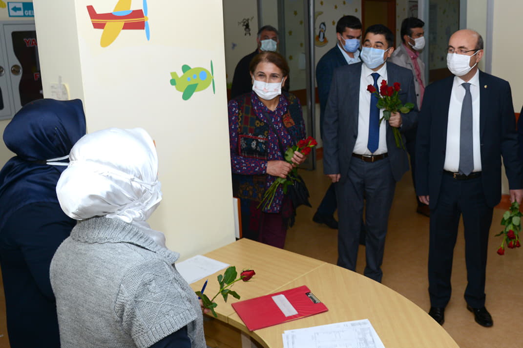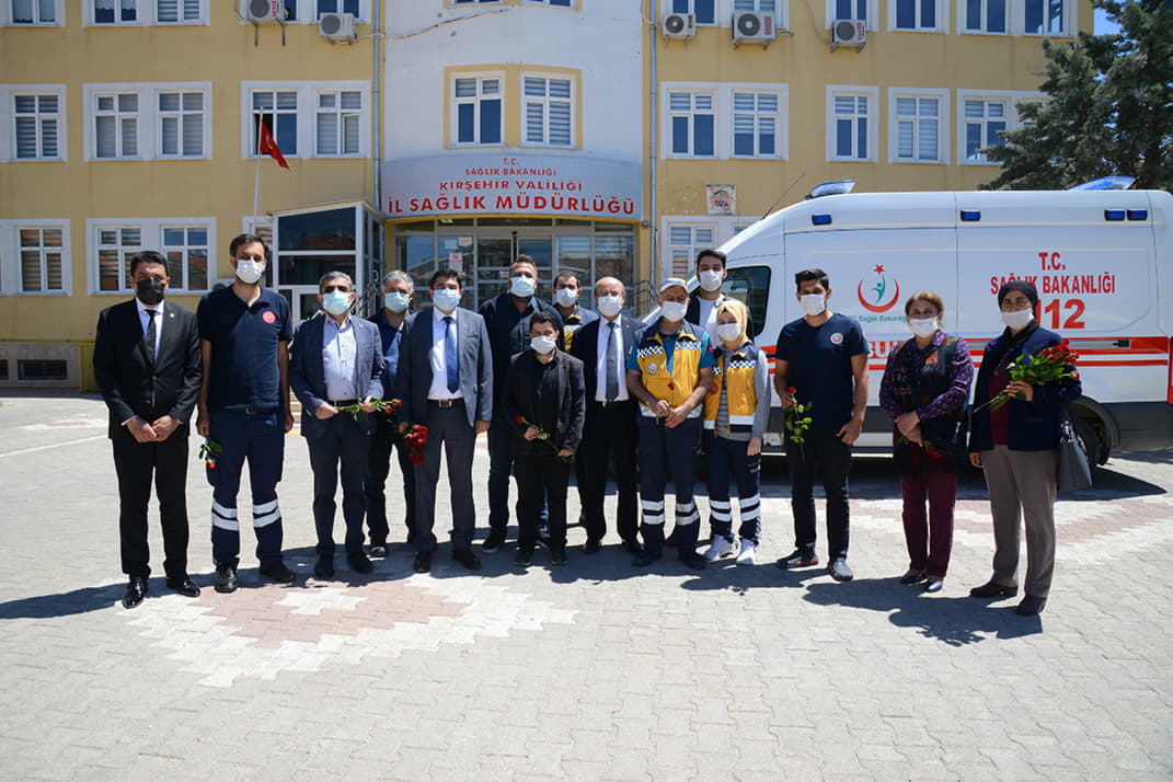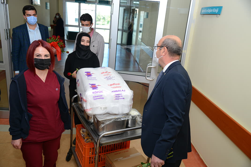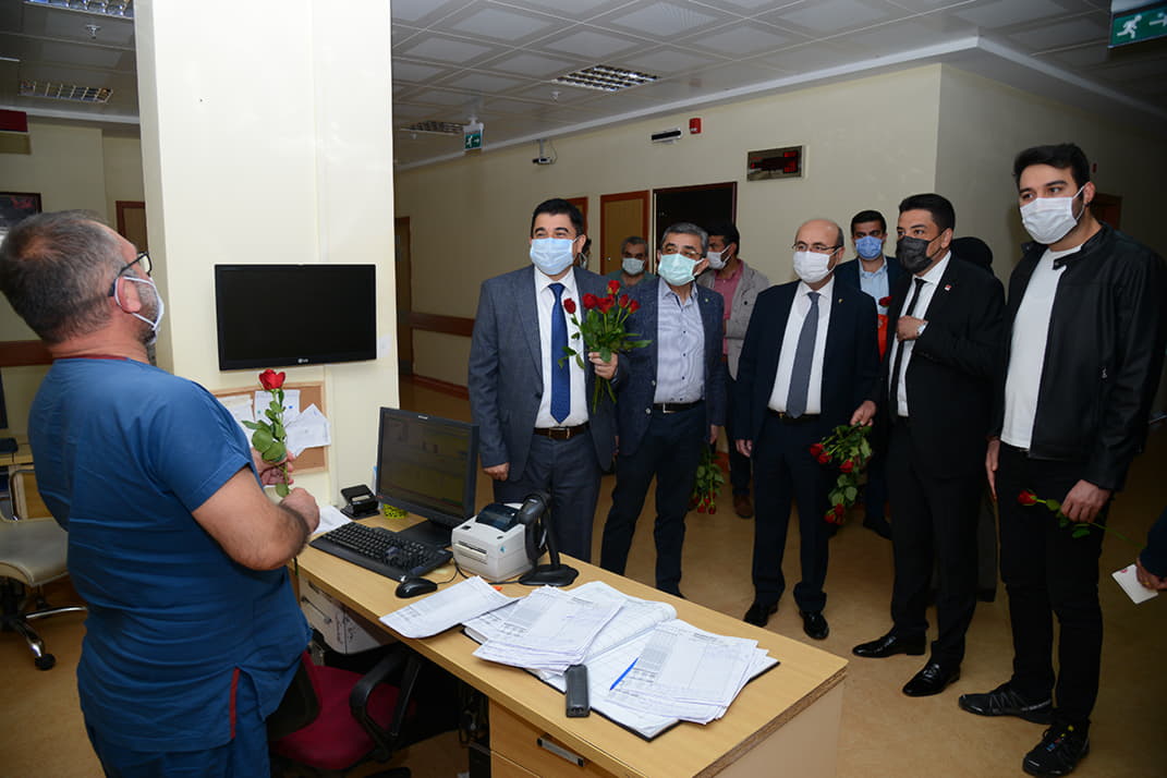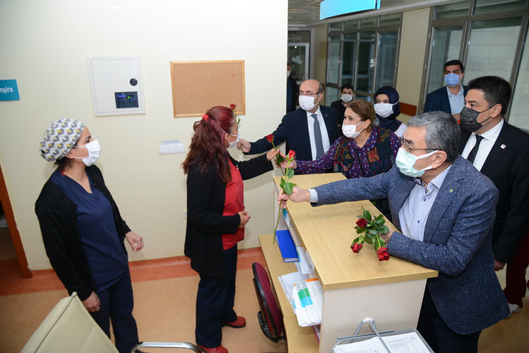 Hastanesi ve 112 Acil Çağrı Merkezi’nde görevli hemşireleri ziyaret ederek,
